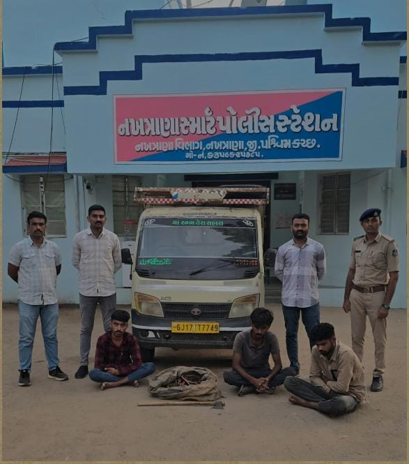 જે અનુસંધાને નખત્રાણા પોલીસ સ્ટેશનના પો.ઇન્સ.શ્રી એ.એમ.મકવાણા સાહેબના માર્ગદર્શન હેઠળ નખત્રાણા પોલીસ સ્ટેશનના પો.હેડ કોન્સ. આનંદભાઈ એમ.ચૌધરી તથા પો.કોન્સ. રમેશભાઈ એચ.રબારી નાઓ રસલીયા ઓ.પી. વિસ્તારમાં પેટ્રોલિંગમાં હતા તે દરમ્યાન ખાનગી રાહે બાતમી હકીકત મળેલ કે, એક ટાટા કંપનીના છોટાહાથીમાં ચોરીના મુદામાલ સાથે લક્ષ્મીપર ગામ બાજુથી નેત્રા ગામ બાજુ આવી રહેલ છે જેથી તુરંત બાતમી હકિકત વાળી જગ્યાએ આવી વોચમાં રહેતા ઉપરોક્ત બાતમી વાળા છોટાહાથીને રોકાવી જે છોટાહાથીની ઝડતી કરતા સળગી ગયેલા કોપર વાયરોના ફિંડલા આશરે ૧૫ કીલોગ્રામ જેટલા જોવામાં આવેલ જે મુદ્દામાલ બાબતે તેમની પાસે આધાર-પુરાવાની માંગણી કરતા તેમની પાસે આ બાબતે કોઇ આધાર-પુરાવા ન હોવાનું જણાવેલ જેથી સદરહું મુદ્દામાલ બાબતે યુક્તિ-પ્રયુક્તિથી પુછપરછ કરતા તેમણે જણાવેલ કે, નેત્રા થી લક્ષ્મીપર તરફ જતા રોડ પર આવેલ વાડીમાંથી ચોરી કરેલ હોવાની કબુલાત આપેલ હોઇ જેથી તેમના વિરૂધ્ધ નખત્રાણા પોલીસ સ્ટેશન ખાતે કાયદેસરની કાર્યવાહી કરવામાં આવેલ છે.