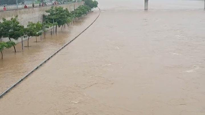 અમદાવાદમાં સાબરમતી નદીએ રૌદ્ર સ્વરૂપ ધારણ કર્યું. ભારે વરસાદને કારણે રિવરફન્ટ ડૂબ્યું