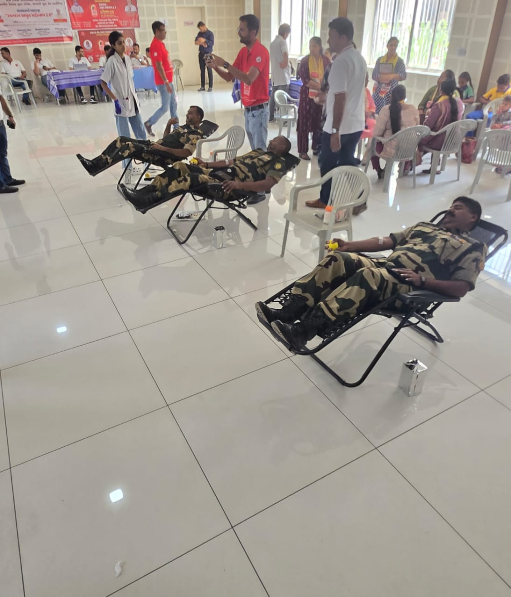 વડાપ્રધાનશ્રી નરેન્દ્રભાઈ મોદીના જન્મદિવસની ઉજવણી નિમિત્તે ગાંધીધામમાં બોર્ડર સિક્યોરિટી ફોર્સની ૮૫મી બટાલિયનના જવાનોએ રક્તદાન કર્યું હતું. ગાંધીધામમાં તેરાપંથ યુવક પરિષદ અને મારવાડી યુવા મંચ દ્વારા શ્રી રાજાભાઈ પટેલ બ્લડ સેન્ટર ખાતે એક મેગા રક્તદાન ઝુંબેશનું આયોજન કરવામાં આવ્યું હતું. આ કેમ્પમાં ગાંધીધામ સ્થિત બોર્ડર સિક્યોરિટી ફોર્સની ૮૫મી બટાલિયનના જવાનોએ ઉત્સાહપૂર્વક ભાગ લીધો હતો. બી.એસ.એફ જવાનોએ સ્વૈચ્છાએ રક્તદાન કરીને અન્ય નાગરિકોને પ્રેરણા પુરી પાડી હતી. આયોજકોએ બ્લડ ડોનેશન કેમ્પમાં ઉત્સાહભેર ભાગ લેવા માટે બોર્ડર સિક્યોરિટી ફોર્સની ૮૫મી બટાલિયનના કમાન્ડન્ટશ્રી શિવ કુમારનો આભાર વ્યક્ત કર્યો હતો.