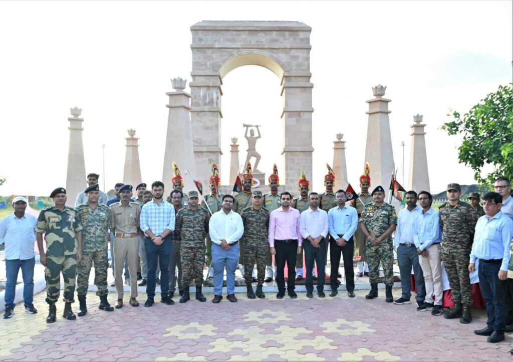 કચ્છ કલેક્ટરશ્રી અને જિલ્લા વહીવટીતંત્રના ઉચ્ચ અધિકારીશ્રીઓ, ઈન્ડિયન આર્મીના અધિકારીશ્રીઓએ બીએસએફ યુદ્ધ સ્મારક ખાતે વીર જવાનોને પુષ્પાંજલિ અર્પણ કરી હતી. કચ્છ જિલ્લા વહીવટીતંત્રના ઉચ્ચ અધિકારીશ્રીઓની સરહદ મુલાકાત એ સેના અને વહીવટીતંત્ર વચ્ચે સંકલન વધારવા માટે મહત્વપૂર્ણ બની હશે. દેશની રક્ષા માટે પરસ્પર સહયોગ વધારવા તેમજ સુરક્ષા અને વિકાસ બાબતે એકસાથે મળીને કામ કરવાની દિશામાં આ મુલાકાત સૂચક બનશે. આ મુલાકાત જિલ્લા વહીવટીતંત્ર અને સશસ્ત્ર વચ્ચે સંકલન વધારવાની સાથે જ સરહદી વિસ્તારમાં સામાજિક-આર્થિક વિકાસને ગતિ આપવા તેમજ સરહદોનું રક્ષણ કરવાના સામૂહિક સંકલ્પને મજબૂત બનાવશે.