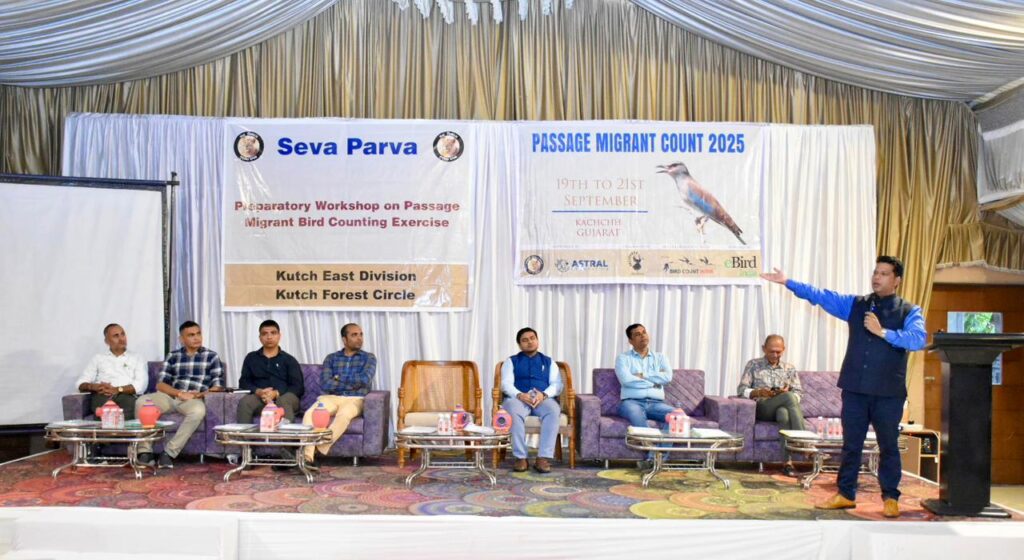 ભુજ ખાતે ચોથા પેસેજ માઇગ્રન્ટ કાઉન્ટ કાર્યક્રમ(ઋતુ પ્રવાસી પક્ષી ગણતરી)નો શુભારંભ ગુજરાત વન વિભાગના અગ્ર મુખ્ય વન સંરક્ષકશ્રી ડો. જયપાલ સિંહની વર્ચ્યુઅલ ઉપસ્થિતિમાં થયો હતો. આ કાર્યક્રમ કચ્છ વન વર્તૂળ વિભાગના મુખ્ય વન સંરક્ષકશ્રી ડૉ. સંદીપ કુમારની વિશેષ ઉપસ્થિતિમાં યોજાયો હતો.