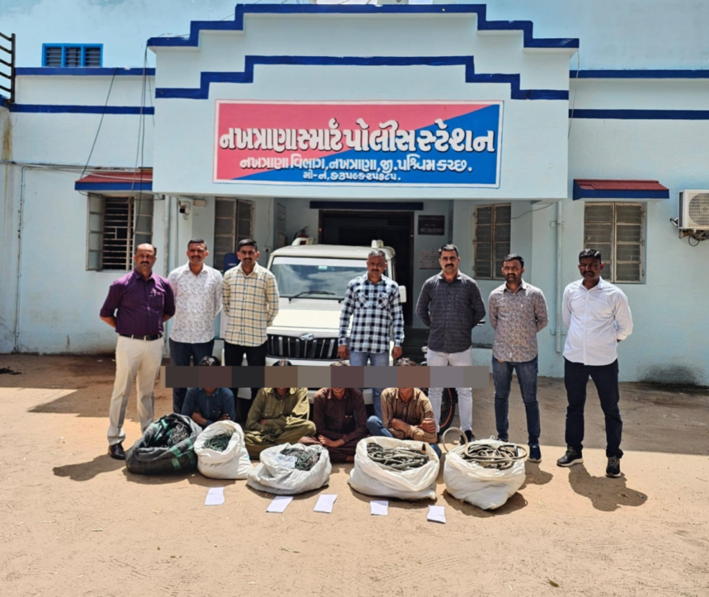 નખત્રાણા પોલીસ સ્ટેશન તથા દયાપર પોલીસ સ્ટેશન હદ વિસ્તારમાંથી વાડીઓમાંથી થતી બોરવેલના કેબલ વાયરોની ચોરીઓનો ભેદ ઉકેલી મુદ્દમાલ સાથે ગેંગને પકડી પાડતી નખત્રાણા પોલીસ