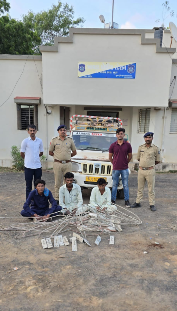 આજરોજ ખાવડા પોલીસ સ્ટેશન પાર્ટ ગુ.ર.નં.૨૯૪/૨૫ બી.એન.એસ ક.૩૦૩, (૨), મુજબના ગુના કામેનો ચોરાયેલ મુદામાલ અમુક ઇસમો ભુજ તરફ વેચવા જવાના હોવાની પો.કોન્સ રધુવીરસિંહ આઇ જાડેજા નાઓની હકીકત આધારે લુડીયા ત્રણ રસ્તા વોચમાં હતા તે દરમ્યાન ખાવડા તરફથી શંકાસ્પદ બોલેરો પીકપ ગાડી આવતી હોય જે ઉભી રખાવી ગાડીની પાછળના ભાગે ચોરાયેલ કોપરના અથિંગ રોડ તથા કોપરની પટીઓ તથા એલ્યુમિનીયમની પ્લેટો પડેલ હોય જેથી લુડીયા ત્રણ રસ્તા ખાતે વર્ક આઉટ કરી પીકપ ગાડીમાંથી ત્રણ આરોપીઓ તથા મુદામાલ તથા એક બોલેરો પીકપ ગાડી સાથે પકડી કાયદેસરની કાર્યવાહી કરવામાં આવેલ છે.