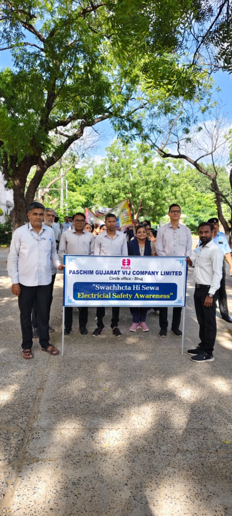 રાજ્યભરમાં તા. ૧૭ સપ્ટેમ્બર ૨૦૨૫ થી તા. ૦૨ ઓક્ટોબર ૨૦૨૫ સુધી “સેવા પખવાડીયા” અને “સ્વચ્છતા હી સેવા અભિયાન”ની રાજ્યભરમાં ઉજવણી કરવામાં આવી રહી છે. જે અંતર્ગત ભુજ ખાતે પીજીવીસીએલ ભુજ વર્તુળ કચેરી તથા ભુજ વિભાગીય કચેરી દ્વારા “સ્વચ્છતા હી સેવા” અને “એનર્જી કન્ઝર્વેશન”ના અંગે જાગૃતતા લાવવા રેલીનું આયોજન કરવામાં આવ્યું હતું. આ રેલીમાં બેનર અને પોસ્ટર દ્વારા “સ્વચ્છતા હી સેવા”, વીજ સલામતી તથા એનર્જી કન્ઝર્વેશન માટે નાગરિકોને જાગૃત કરવામાં આવ્યા હતાં. આ રેલીમાં કચેરીઓના અધિકારીશ્રીઓ, કર્મચારીશ્રીઓ તથા નાગરિકો જોડાયા હતાં.