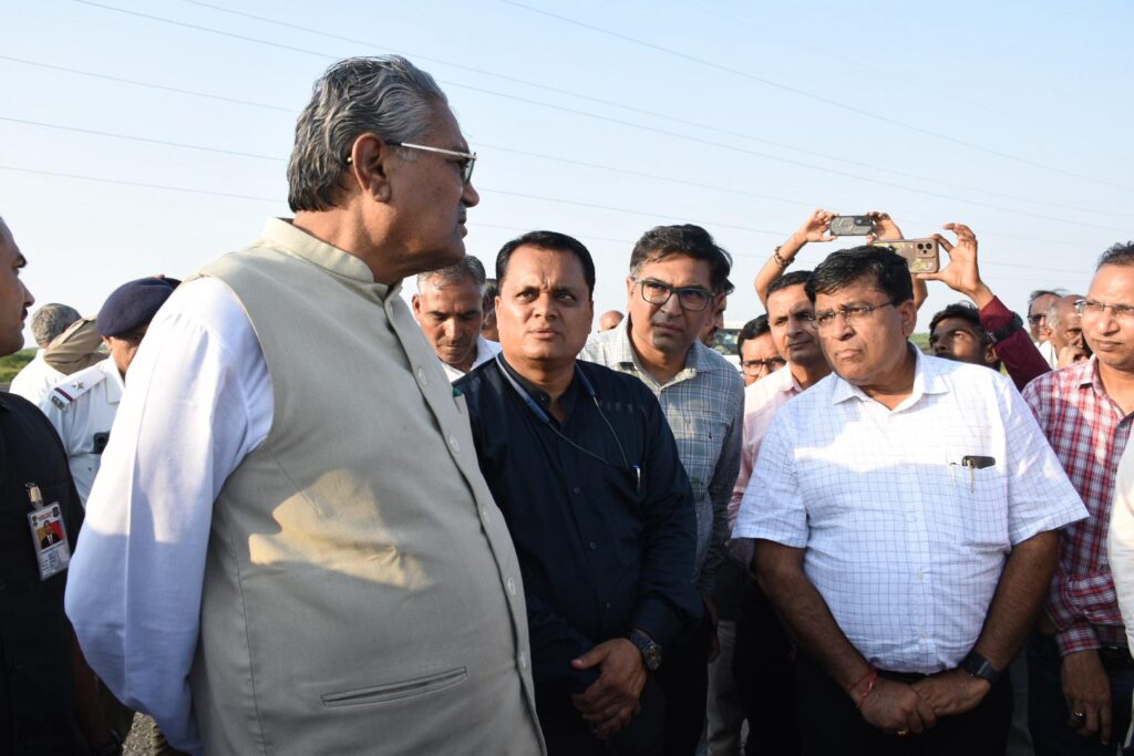 કૃષિ મંત્રીશ્રી રાઘવજી પટેલે આજરોજ કચ્છ જિલ્લાના રાપર તાલુકાના અતિવૃષ્ટિથી અસરગ્રસ્ત માખેલ ગામની મુલાકાત લઈને ખેડૂતો સાથે સીધો જ સંવાદ કર્યો હતો. કૃષિ મંત્રીશ્રીએ કચ્છ જિલ્લાના કૃષિ વિભાગના ઉચ્ચ અધિકારીશ્રીઓની ઉપસ્થિતિમાં અતિવૃષ્ટિ બાદ પાકની સ્થિતિ અંગે ખ્યાલ મેળવ્યો હતો. જિલ્લા ખેતીવાડી અધિકારીશ્રી કિરણસિંહ વાઘેલા સહિત ઉચ્ચ અધિકારીશ્રીઓએ ભારે વરસાદથી કૃષિ નુકસાન અને હાલની સ્થિતિ અંગે મંત્રીશ્રીને અવગત કર્યા હતા. કૃષિ મંત્રીશ્રીએ ધરતીપુત્રો સાથે સીધો જ સંવાદ કરીને તેમની પાક નુકશાની અંગે જાણકારી મેળવી હતી. સરકાર દ્વારા હાલમાં ચાલી રહેલા પાક નુકશાની સરવે વિશે કૃષિ મંત્રીશ્રીએ અધિકારીશ્રીઓ પાસેથી વિગતો મેળવી હતી. રાજ્ય સરકાર હંમેશા ખેડૂતોના હિત માટે પ્રતિબદ્ધ રહી છે તેમ કૃષિમંત્રીશ્રીએ સરવે બાદ નિયમોનુસાર ઝડપથી સહાય અપાશે તેમ જણાવ્યું હતું.