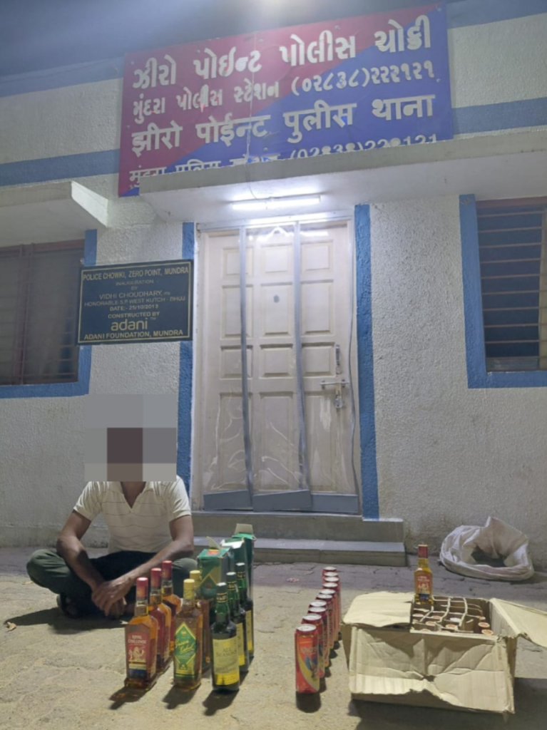 જે સુચના અન્વયે લોકલ ક્રાઇમ બ્રાન્ચ, પશ્ચિમ કચ્છ-ભુજના ઇન્ચાર્જ પોલીસ ઇન્સ્પેકટરશ્રી એચ.આર.જેઠી તથા પોલીસ સબ ઇન્સ્પેકટરશ્રી જે.બી.જાદવ નાઓએ પશ્ચિમ કચ્છ-ભુજ જિલ્લામાં ભારતીય બનાવટના વિદેશી દારૂની પ્રવૃત્તિનો ગેરકાયદેસર રીતે જથ્થો મંગાવી વેચનારા ઇસમો ઉપર વોચ રાખી કાયદેસર કાર્યવાહી કરવા સુચના આપેલ હોય જે સુચના અનુસંધાને એ.એસ.આઇ. નિલેશભાઇ ભટ્ટ, પ્રધ્યુમનસિંહ ગોહિલ, અનિરૂધ્ધસિંહ રાઠોડ તથા પોલીસ હેડ કોન્સ્ટેબલ ધર્મેન્દ્રભાઇ રાવલ શક્તિસિંહ ગઢવી તથા રાજદીપસિંહ ગોહિલનાઓ મુંદરા પોલીસ સ્ટેશન વિસ્તારમાં પેટ્રોલીંગમાં હતા. તે દરમ્યાન ખાનગી રાહે બાતમી હકીકત મળેલ કે, ભુજપર ગામમાં આવેલ સિમધરસિટીના સામે ક્રીકેટ ગ્રાઉન્ડ તરફ જતા કાચા રસ્તાની બાજુમાં એક ઇસમ ખુલ્લી જગ્યામાં બાવળોની ઝાડીમાં ભારતીય બનાવટનો વિદેશીદારૂનો જથ્થો રાખી તેનુ વેચાણ છે અને હાલે તેની આ પ્રવુતી ચાલુમા છે. જે હકીકત આધારે તપાસ કરતા ચેતન નવીનભાઈ બારોટ રહે. ખાખરાવાસ, ભુજપર તા. મુંદરા વાળો રેઇડ દરમ્યાન હાજર મળી આવેલ અને મજકુર ઇસમના કબ્જામાંથી નીચેની વિગતે ભારતીય બનાવટનો વિદેશીદારૂનો જથ્થો મળી આવેલ જેથી કાયદેસરની કાર્યવાહી કરી તમામ મુદ્દામાલ મુંદરા પોલીસ સ્ટેશન ખાતે સોપવામાં આવેલ.
