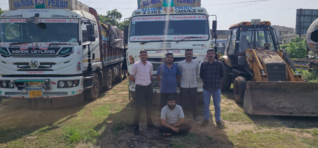 રોયલ્ટી કે પાસ પરમીટ વગર બોક્સાઇડન ખનન અને વહન કરતા બે ટ્રક તથા એક જે.સી.બી. પકડી કાર્યવાહી કરતી લોકલ ક્રાઈમ બ્રાન્ચ, પશ્ચિમ કચ્છ-ભુજ”