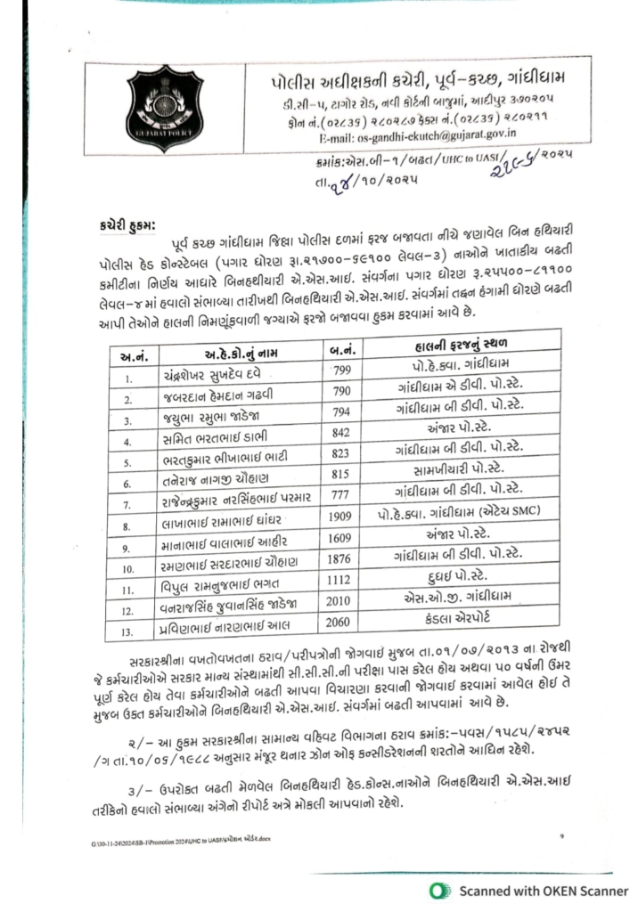 પૂર્વ ક્ચ્છ પોલીસ કર્મીઓને દિવાળી પહેલા મળી બઢતી