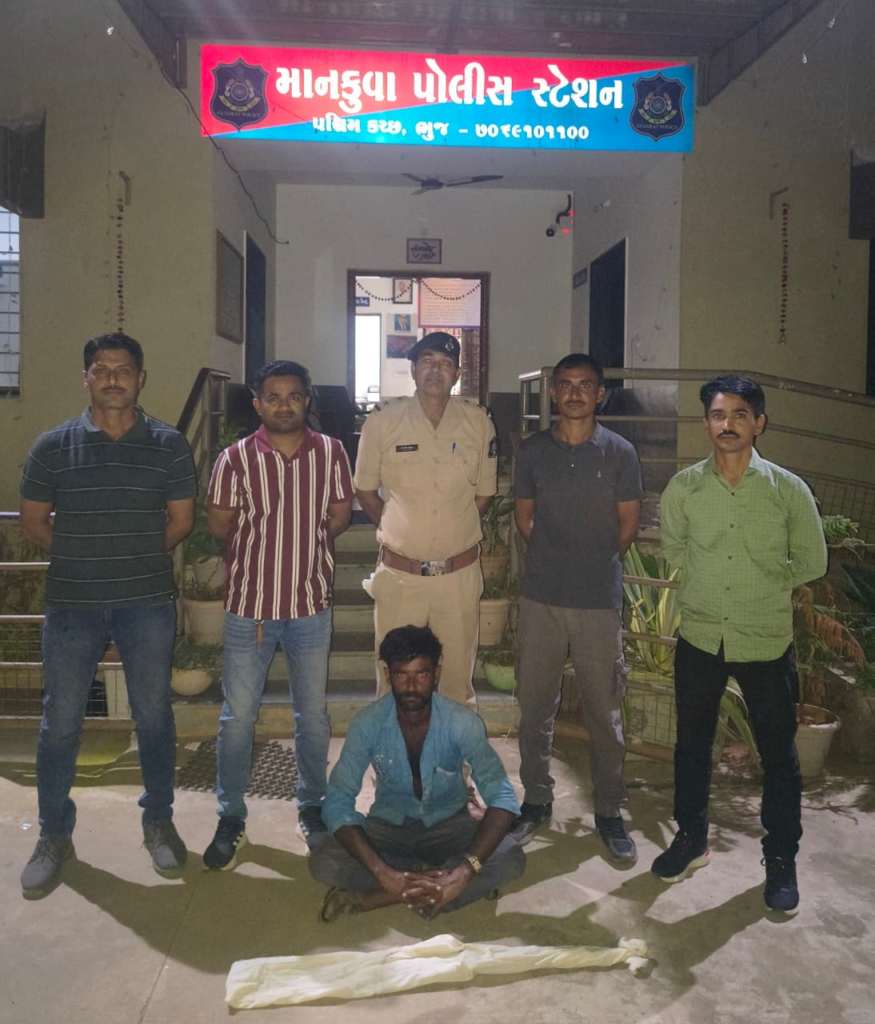 જે અન્વયે શ્રી પી.પી ગોહિલ, ઇન્ચાર્જ પોલીસ ઇન્સ્પેકટર, માનકુવા પોલીસ સ્ટેશનનાઓના માર્ગદર્શન મુજબ માનકુવા પો.સ્ટે.ના અધિકારી તથા કર્મચારીઓ પો. સ્ટે. વિસ્તારમાં પેટ્રોલીંગમાં હતા તે દરમ્યાન સર્વેલન્સ સ્કોડના એ.એસ.આઈ ઉપેન્દ્રસિંહ રાણા નાઓને ખાનગી રાહે મળેલ સચોટ બાતમી અન્વયે જરૂરી વર્ક-આઉટ કરી કમાગુના ગામની સીમમાંથી આરોપી ઈમરાન જાફર મેર ઉ.વ-૨૯ રહે- કમાગુના તા.ભુજ વાળાને ઝડપી પાડી તેના કબ્જામાંથી ગેર-કાયદેસર રીતે રાખેલ એક દેશી હાથ બનાવટની બંદુક (અગ્નિશસ્ત્ર) કી.રૂ.૨,૦૦0/- ની ઝડપી પાડી મજકુર ઇસમ વિરૂધ્ધ આર્મ્સ એકટ તથા જાહેરનામાં ભંગ હેઠળની કાયદેસરની કાર્યવાહી કરવામાં આવેલ છે.