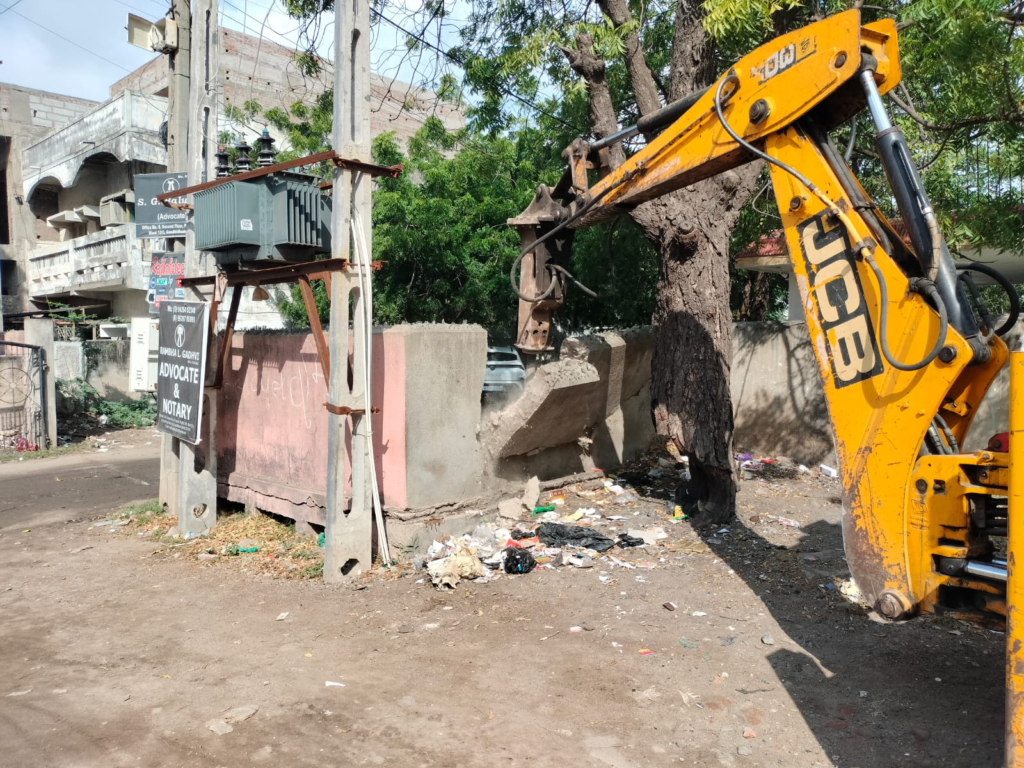ગાંધીધામ મહાનગરપાલિકા દ્વારા આજરોજ તા.૦૩/૧૧/૨૦૨૫ ના રોજ સેક્ટર-૧/એ અને વોર્ડ ૧૨/સી વિસ્તારના ના કાચા પાકા અંદાજે ૪૪ જેટલા ગેરકાયદેસર દબાણો દુર કરવામાં આવ્યા જે દબાણ ઝુંબેશ કાર્યક્રમમાં ગાંધીધામ મહાનગરપાલિકા ના નાયબ મ્યુનિસિપલ કમિશનરસંજયકુમાર રામાનુજ, દબાણ ઇન્સ્પેકટર શ્રી ગાયત્રી પ્રસાદ જોષી અને તેઓની સંયુક્ત ટીમ દ્વારા મહાનગરપાલિકાના સં-સાધનોથી આ કાર્યવાહી હાથ ધરવામાં આવેલ છે. જે આ દબાણો દુર થવાથી લોકોને આવવા જવામાં સરળતા રહેશે તેવું મહાનગરપાલિકા ની અખબાર યાદી માં જણાવવામાં આવે છે.