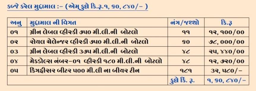અંજાર પોલીસ સ્ટેશન ગુ.૨.નં.૧૧૯૯૩૦૦૩૨૫૧૩૭૮/૨૫ પ્રોહી કલમ-૬૫(એ) (ઈ) ૧૧૬(બી) મુજબ