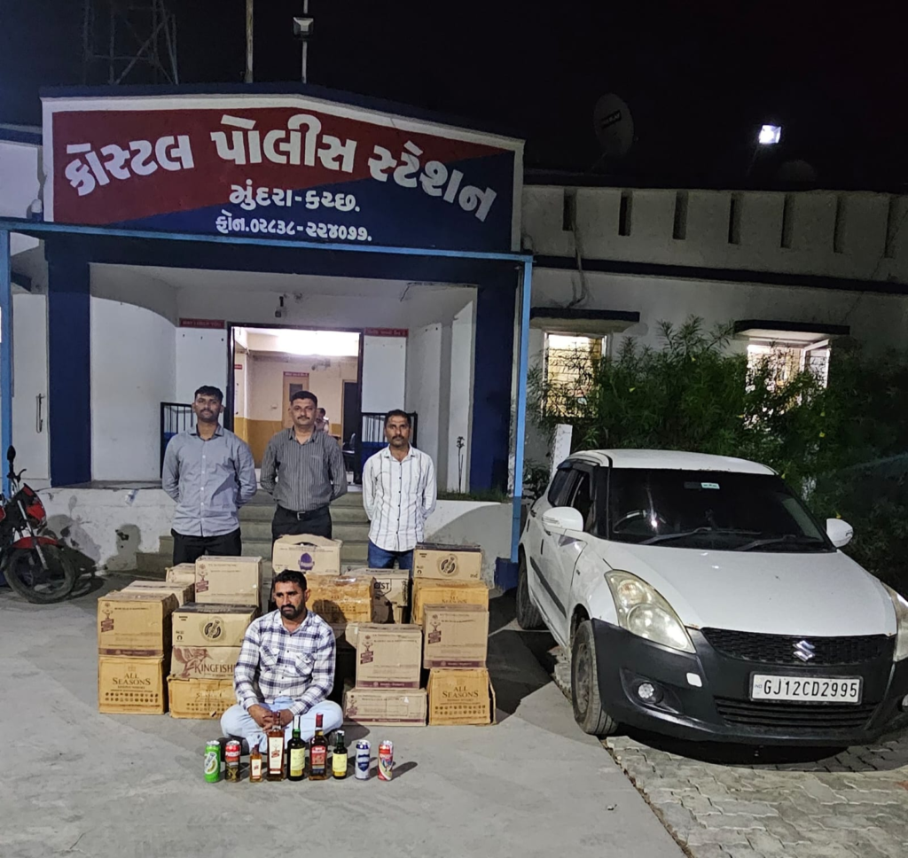 જે સુચના અન્વયે લોકલ ક્રાઇમ બ્રાન્ચ, પશ્ચિમ કચ્છ-ભુજના ઇન્ચાર્જ પોલીસ ઇન્સ્પેકટરશ્રી એચ.આર.જેઠી તથા પોલીસ સબ ઇન્સ્પેકટરશ્રી જે.બી.જાદવ નાઓએ પશ્ચિમ કચ્છ-ભુજ જિલ્લામાં ભારતીય બનાવટના વિદેશી દારૂની પ્રવૃત્તિનો ગેરકાયદેસર રીતે જથ્થો મંગાવી વેચનારા ઇસમો ઉપર વોચ રાખી કાયદેસર કાર્યવાહી કરવા સુચના આપેલ હોય જે સુચના અનુસંધાને એ.એસ.આઈ. પ્રધ્યુમનસિંહ ગોહિલ તથા પોલીસ કોન્સ્ટેબલ રામજીભાઈ રબારી તથા મહેશભાઈ ચૌહાણનાઓ મુંદરા તાલુકા વિસ્તારમાં પેટ્રોલીંગમાં હતાં તે દરમ્યાન રામજીભાઇ રબારી તથા મહેશભાઇ ચૌહાણનાઓને ખાનગી રાહે બાતમી હકીકત મળેલ કે, વવાર ગામે નર્મદા કેનાલથી વડાલા ગામ તરફ જતા કાચા રસ્તા પર વડાલા ગામની સીમમાં આવેલ માણશીભાઈ ગઢવીની વાડીમાં રતન સુમાર બારોટ રહે.વવાર તા.મુંદરાવાળાએ ગે.કા. રીતે વિદે શદારૂનો જથ્થો સફેદ કલરની સ્વિફ્ટ કારમાં રાખેલ છે અને હાલે સગેવગે કરવાની તૈયારીમાં છે. જે હકીકત આધારે તપાસ કરતા નીચેની વિગતે ભારતીય બનાવટનો વિદેશીદારૂનો જથ્થો મળી આવેલ જેથી કાયદેસરની કાર્યવાહી કરી મુંદરા મરીન પોલીસ સ્ટેશનમાં ગુ.ર.નં. ૪૦૫/૨૦૨૫ ધી ગુજરાત પ્રોહીબીશન એક્ટની કલમ ૬૫(એ)(ઇ), ૮૧,૯૮(૨) મુજબ ગુનો રજીસ્ટર કરાવી તમામ મુદ્દામાલ મુંદરા મરીન પોલીસ સ્ટેશન ખાતે સોપવામાં આવેલ.
