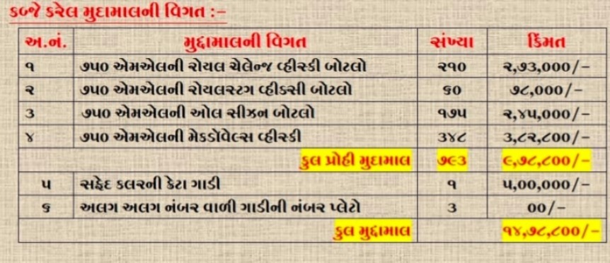 પોલીસ મહાનિરીક્ષક શ્રી ચીરાગ કોરડીયા સાહેબ, સરહદી રેન્જ ભુજ તથા પોલીસ અધિક્ષકશ્રી સાગર બાગમાર સાહેબ પૂર્વ કચ્છ, ગાંધીધામનાઓ તરફથી જિલ્લામાં પ્રોહીબીશનની પ્રવૃતિ નેસ્ત-નાબુદ ક૨વા જરૂરી સુચના આપેલ હોય જેથી પોલીસ ઇન્સપેક્ટર એન.એન.ચુડાસમા એલ.સી.બી.નાઓની આગેવાનીમાં એલ.સી.બી ની ટીમ ગાંધીધામ-સામખિયાળી હાઇવે વિસ્તારમાં પેટ્રોલીંગમાં હતી દરમ્યાન બાતમી હડીકત મળેલ કે એક સફેદ કલરની જીજે.૧૨.ડીએમ.૩૧૩૧ નંબર પ્લેટ લગાડેલ કેટા કાર વિદેશી દારૂનો જથ્થો ભરેલી પડાણાથી સામખિયાળી તરફ જઈ રહેલ છે જે બાતમી આધારે એલસીબી ટીમ સામખિયાળી ટોલ નાકા પાસે વોચમાં ઉભી હતી તે દ૨મ્યાન બાતમી વાળી કેટા કાર પૂરપાટે આવતી જોઈ તે ગાડીને એલ.સી.બી ની ટીમ દ્વારા રોકવા ઇશારો કરતા તે કારના ચાલકે પોતાની કાર ઓવરસ્પીડે ચલાવી ટોલ નાકા ખાતે વાહનોની ટ્રાફીકનો લાભ મેળવી પોતાના કબ્જાની કેટા કા૨ મુડી તેમાથી બે ઇસમો નાશી ગયેલ આ કેટા કાર ચેક ક૨તા તેમાંથી વિદેશી દારૂનો જથ્થો મળી આવેલ જેથી કેટા કા૨ તથા પ્રોહી મુદામાલ કબ્જે કરવામાં આવેલ અને સદરહુ કેટા કારના એન્જીન/ચેચીસ નંબર ચેક કરતા આ કેટા કા૨માં ડુપ્લીકેટ નંબર પ્લેટ લગાડેલ હોવાનુ જણાઈ આવતા ખોટી નંબર પ્લેટ લગાડી વિદેશી દારૂની હેર ફેર કરવા સબંધે શ્રી સરકાર તરફે ફરીયાદ આપી સામખ્યારી પો.સ્ટે માં ગુનો દાખલ કરાવી કાયદેસરની કાર્યવાહી ક૨વામાં આવેલ છે