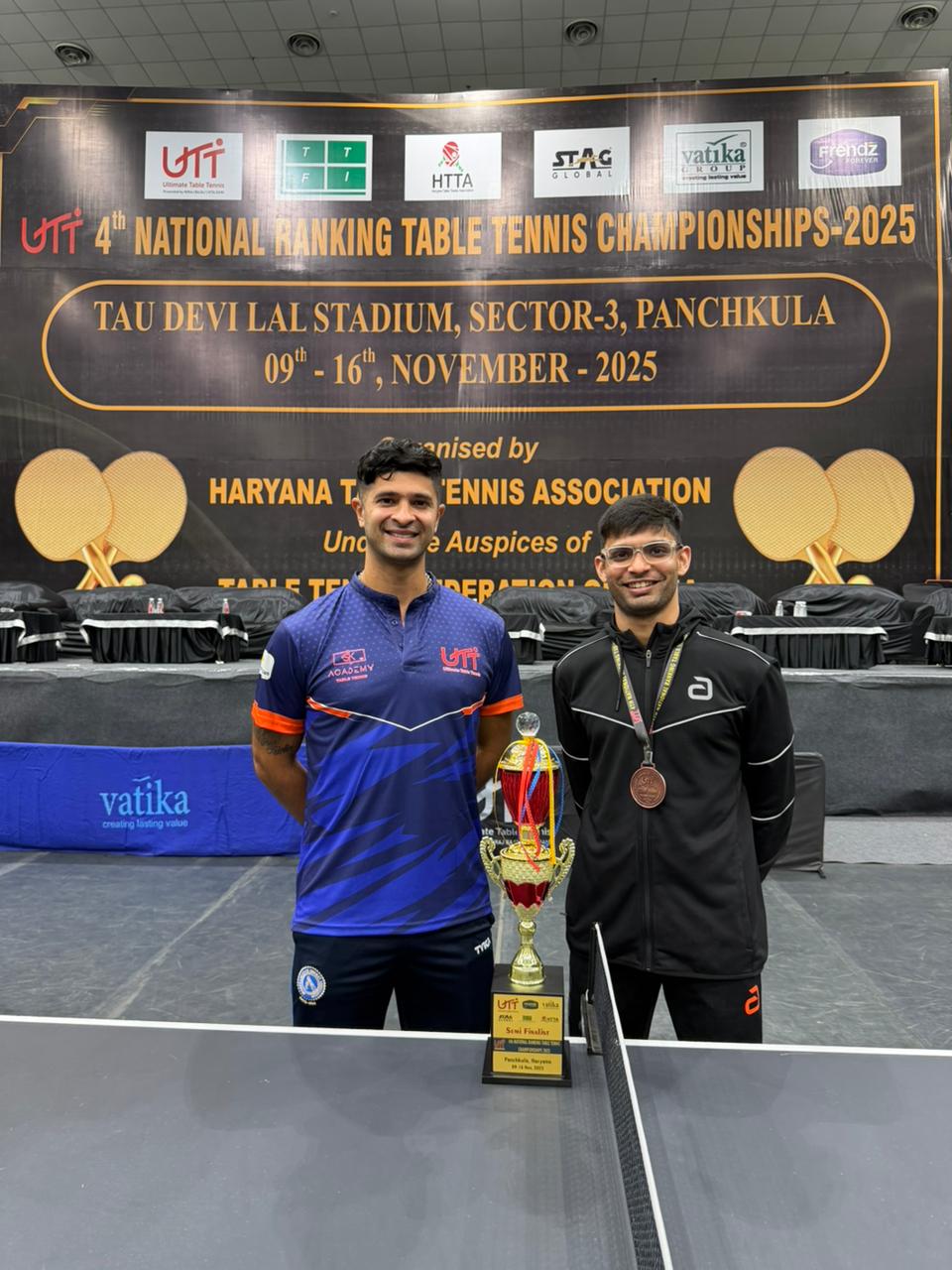 હરિયાણા ટેબલ ટેનિસ એસોસિયેશનના ઉપક્રમે પંચકુલા ખાતે યોજાયેલી યુટીટી ચોથી નેશનલ રેન્કિંગ ટેબલ ટેનિસ ચેમ્પિયનશિપ 2025મા ભારતના મોખરાના મેન્સ ખેલાડી અને વડોદરાના માનુષ શાહ સેમિફાઇનલમાં હારી જતાં બ્રોન્ઝ મેડલ જીત્યો હતો.