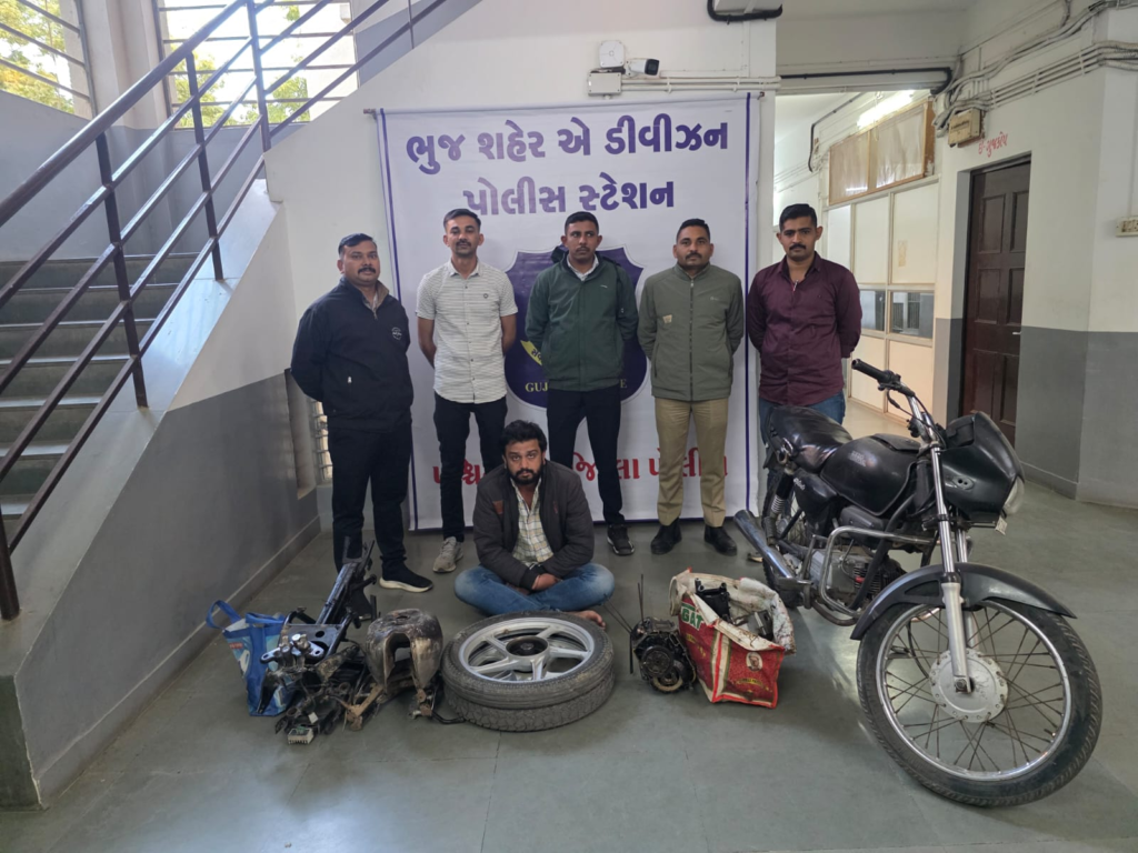 જે અનવ્યે ભુજ શહેર એ ડીવીઝન પોલીસ સ્ટેશન પાર્ટ એ ગુ.ર.નં-૧૧૨૦૫૦૪૨૨૫૧૨૮૬/૨૦૨૫ બી એન એસ કલમ-૩૦૩(૨) મુજબનો ગુનો દાખલ થયેલ સદર ગુનો અનડિટેકટ હોઇ જે ગુનો શોધવા સારૂ પોલીસ ઇન્સપેકટરશ્રી એ.એમ. પટેલ ભુજ શહેર એ.ડીવીઝન પોલીસ સ્ટેશનનાઓના સુચના & માર્ગદર્શન હેઠળ ભુજ શહેર એ.ડીવીઝન પોલીસ સ્ટેશનના સર્વેલન્સ સ્ટાફના માણસો પો.સ્ટેશન વિસ્તારમાં પેટ્રોલિંગ દરમિયાન બાતમી આધારે આ કામના આરોપીની પુછપરછ કરતા સદર મો.સા.ની ચોરી પોતે કરી મો.સા.ના સ્પેરપાર્ટસ જુદ્દા કરી નાખેલ હોવાની કબુલાત કરેલ હોઇ અને અન્ય એક કાળા કલરની સ્પ્લેન્ડર મો.સા.કલાસીક કોમ્પ્લેક્ષ લાલ ટેકરી પાસેથી ચોરી કરેલ હોવાની કબુલાત આપેલ હોઇ જેથી બંને વાહન તેમજ મુદ્દામાલ રિકવર કરવામા આવેલ અને મજકુર આરોપી વિરૂધ્ધ કાયદેસરની કાર્યવાહી કરવામા આવેલ છે.આ કામેની આગળની તપાસ પો.સબ.ઇન્સ આર.જે.ગોહિલનાઓ ચલાવી રહેલ છે.