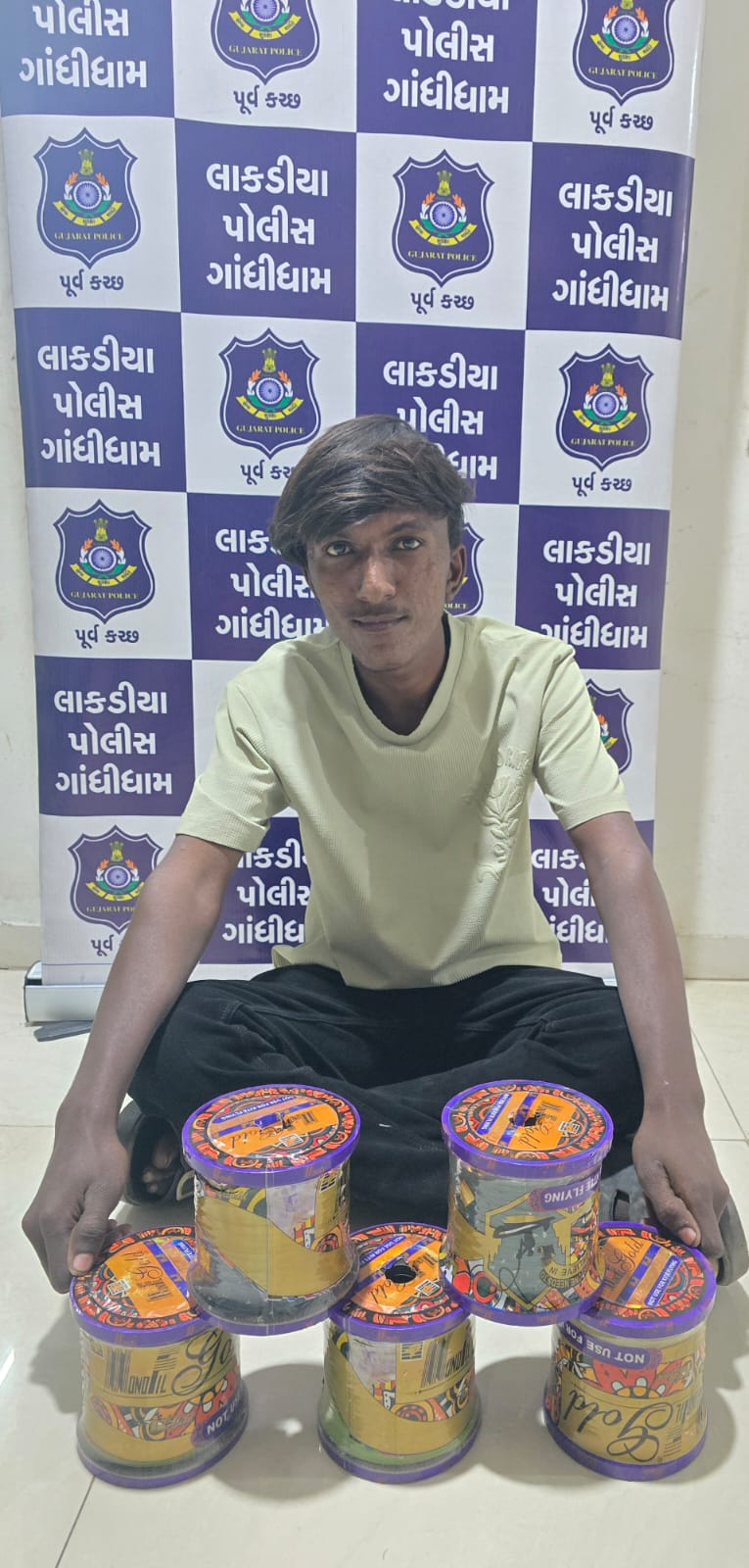 મે.પોલીસ મહાનિરીક્ષકશ્રી ચીરાગ કોરડીયા સાહેબ, બોર્ડર રેન્જ ભુજ તથા મે.પોલીસ અધિક્ષક શ્રી સાગર બાગમાર સાહેબ, પૂર્વ કચ્છ ગાંધીધામ તથા નાયબ પોલીસ અધિક્ષક.શ્રી સાગર સાંબડા સાહેબ, ભચાઉ વિભાગ ભચાઉ નાઓ તરફથી જિલ્લામાં પ્રતિબંધિત ચાઇનીઝ તુક્કલ દોરી શોધી કાઢવા જરૂરી સુચના આપેલ હોય જે અન્વયે લાકડીયા પોલીસ સ્ટેશનના પોલીસ ઇન્સપેકટર જે.એમ.જાડેજા નાઓની સુચના અનુસંધાને લાકડીયા પોલીસના માણસો રાધનપુર-સામખીયાળી ને.હાઇવે ગેલ ઇન્ડીયા પાસે રોડ પર વાહન ચેકિંગ કરતા હતા દરમ્યાન લાલાભાઇ વેલાભાઇ પરમાર ઉ.વ-૧૯ રહે-ગાયત્રીનગર વિસ્તાર લાકડીયા તા.ભચાઉ કચ્છવાળો પોતાના કબ્જામાં પ્રતિબંધિત ચાઇનીઝ તુક્કલ દોરી લઇને આવતો હોય જેથી આરોપી પાસેથી પ્રતિબંધિત ચાઇનીઝ તુક્કલ દોરીની રીલ નંગ-૦૫ મળી આવતા આરોપીને પકડી પાડી ધોરણસર કાર્યવાહી કરવામાં આવેલ છે.