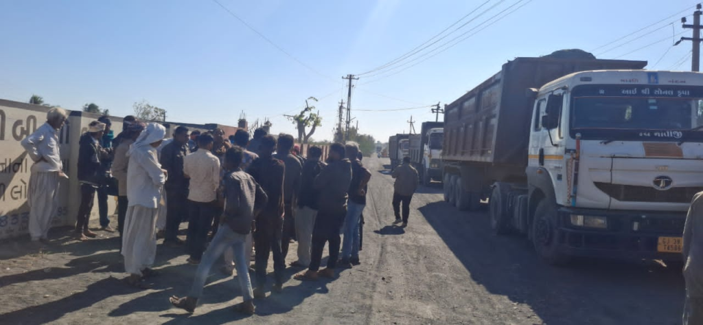 ખાણની ટ્રકોના અતિશય વાહનવ્યવહાર સામે ગ્રામજનોનો રસ્તા બંધ કરી વિરોધ