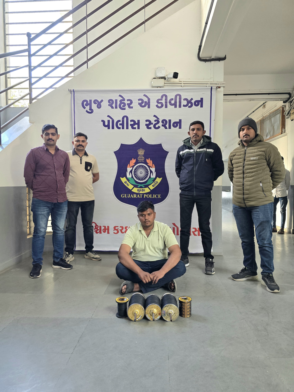 જે અનવ્યે પોલીસ ઇન્સ્પેક્ટરશ્રી એ.એમ.પટેલ સાહેબના સુચના તથા માર્ગદર્શન હેઠળ સર્વેલન્સ સ્ટાફના કર્મચારીઓ પોલીસ સ્ટેશન વિસ્તારમા પેટ્રોલિંગમા હતા તે દરમિયાન ફરતા ફરતા ખાનગી રાહે બાતમી હકીકત મળેલ કે ભુજ મધ્યે ધારાનગરમા રહેતા સાજીદ ગુલમામદ સંઘવાણી પોતાના ઘરે ચાઇનીઝ પ્લાસ્ટીકની દોરી રાખીને વેચાણ કરતો હોવાની બાતમી હકીકત અનવ્યે સર્વેલન્સ સ્ટાફના કર્મચારીઓએ જણાવેલ જગ્યાએ જઇ વર્કઆઉટ કરી રેઇડ કરતા સાજીદ ગુલમામદ સંઘવાણી રહે-ધારાનગર ભુજવાળો પોતાના ઘરે ચાઇનીઝ પ્લાસ્ટીકની દોરીની નાની મોટી ફિરકીઓ નંગ-૦૫ મળી આવેલ હોઇ જેથી તેઓના વિરૂધ્ધમા આગળની કાયદેસરની કાર્યવાહી કરવામા આવેલ છે.