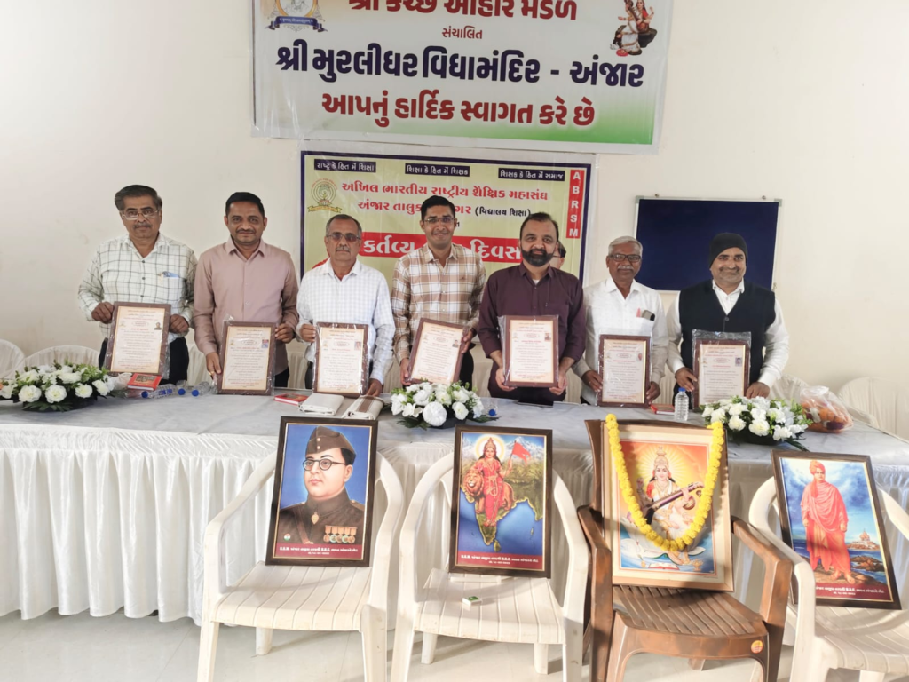 અખિલ ભારતીય રાષ્ટ્રીય શૈક્ષિક મહાસંઘ અંજાર તાલુકા અને નગર દ્વારા ‘કર્તવ્ય બોધ દિવસ’ અને ‘કર્તવ્ય નિષ્ઠ કર્મચારીઓનું સન્માન કાર્યક્રમ’ ની ભવ્ય ઉજવણી કરવામાં આવી.
