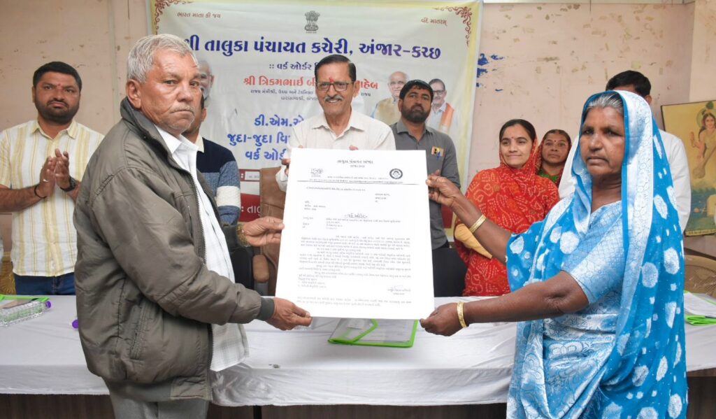 અંજાર ખાતે ઉચ્ચ અને ટેક્નિકલ શિક્ષણ રાજ્યમંત્રીશ્રી ત્રિકમભાઈ છાંગાના હસ્તે ૧૩ ગામના સરપંચને રૂ. ૧૧૮ લાખના વિકાસ કામના વર્કઓર્ડર એનાયત