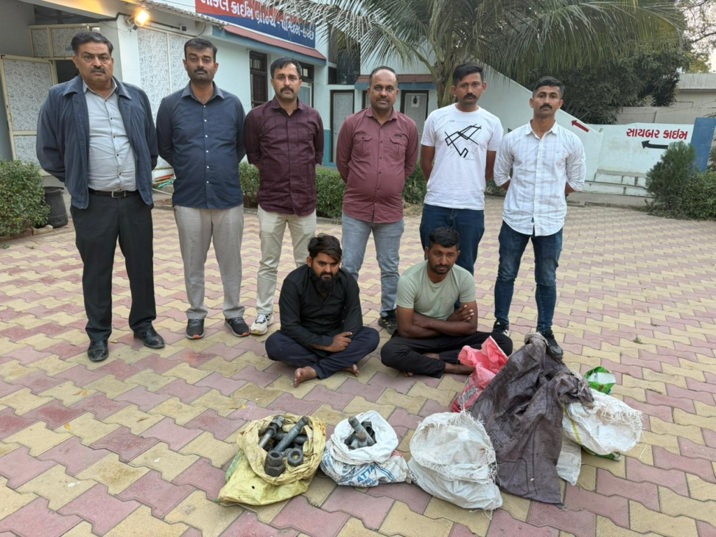 જે સુચના અને માર્ગદર્શન મુજબ લોકલ ક્રાઇમ બ્રાન્ચ પશ્ચિમ કચ્છ-ભુજના પોલીસ ઇન્સ્પેકટરશ્રી એ.એમ.મકવાણા સાહેબ તથા પોલીસ સબ ઇન્સ્પેકટરશ્રી જે.બી.જાદવ સાહેબ તથા એમ.એચ.શીણોલ સાહેબનાઓએ લોકલ ક્રાઇમ બ્રાન્ચના પોલીસ કર્મચારીઓને જીલ્લામાં વણશોધાયેલ ચોરીના ગુનાઓ શોધવા માટે સુચના આપેલ હતી. જે સુચના મુજબ લોકલ ક્રાઇમ બ્રાન્ચના એ.એસ.આઇ. નિલેશભાઇ ભટ્ટ, અનિરુધ્ધસિંહ રાઠોડ તથા પોલીસ હેડ કોન્સ્ટેબલ ધર્મેદ્રભાઇ રાવલ, નવીનકુમાર જોષી, શક્તિસિંહ ગઢવી, રાજેંદ્રસિંહ રાઠોડ તથા પોલીસ કોન્સ્ટેબલ જીવરાજભાઇ ગઢવી, ભરતભાઇ ગઢવીનાઓ મીલકત સબંધી ગુનાઓ શોધવા માટે ભુજ શહેર તાલુકા વિસ્તારમાં આધુનીક ઇંવેસ્ટીગેશન કીટ સાથે પેટ્રોલીંગમાં હતા. તે દરમ્યાન ફરતા-ફરતા ભીડનાકા પાસે આવતા નિલેશભાઇ ભટ્ટ નાઓને ખાનગી રાહે બાતમી હકીકત મળેલ કે, “સલીમ કાસમ કુંભાર રહે.-લખુરાઇ ચાર રસ્તા પાસે હુજ વાળો તેના કબ્જાના ભોગવટાના ભંગારનો વાડો જે આત્મારામ સર્કલથી ગીતા માર્કેટ તરફ જતા રસ્તા નજીક આવેલ છે જે વાડાની અંદર પવનચક્કીમાં ઉપયોગમાં લેવાતા લોખંડના નટ-બોલ્ટ પડેલ છે જે તેને ચોરી કે છળકપટથી મેળવેલ છે અને સગેવગે કરવાની ફીરાકમાં છે.” જેથી મળેલ હકીકત અંગે તુરત જ વર્કઆઉટ કરી બાતમીવાળી જગ્યાએ તપાસ કરતા બે ઇસમો મળી આવેલ અને તેમના કબ્જાના વાડામાં લોખંડના નટ-બોલ્ટના કોથળા ભરેલ પડેલ હોઇ જે બાબતે મજકુર ઇસમો પાસે રહેલ મુદ્દામાલ બાબતે કોઇ આધાર પુરાવા કે બીલ બાબતે પુછતા નહી હોવાની હકીકત જણાવેલ. જેથી મજકુર ઇસમોના કબ્જામાંથી મળી આવેલ મુદ્દામાલ શક પડતી મિલ્કત તરીકે બી.એન.એસ.એસ. કલમ ૧૦૬ મુજબ કબ્જે કરી મજકુર ઇસમોને બી.એન.એસ.એસ. કલમ- ૩૫(૧)ઇ મુજબ અટક કરી આગળની કાયદેસરની કાર્યવાહી હાથ ધરેલ છે.