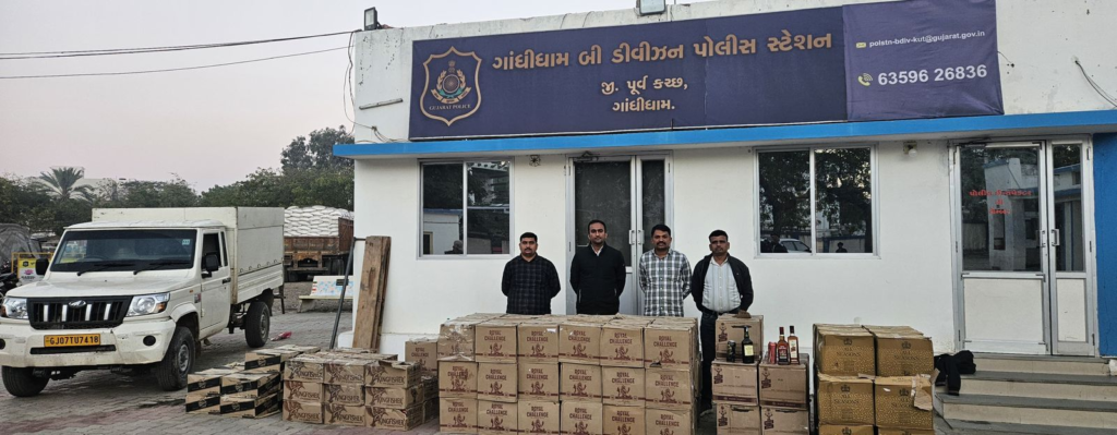 પોલીસ મહાનિરીક્ષક શ્રી ચીરાગ કોરડીયા સાહેબ, સરહદી રેન્જ ભુજ તથા પોલીસ અધિક્ષકશ્રી સાગર બાગમાર સાહેબ પૂર્વ કચ્છ, ગાંધીધામનાઓ તરફથી જિલ્લામાં પ્રોહીબીશનની પ્રવૃતિ નેસ્ત-નાબુદ ક૨વા જરૂરી સુચના આપેલ હોય જેથી પોલીસ ઈન્સપેક્ટર એન.એન.ચુડાસમા એલ.સી.બી.નાઓની આગેવાનીમાં પોલીસ સબ ઇન્સપેકટર ડી.જી.પટેલ તથા એલ.સી.બી ની ટીમ ગાંધીધામ ભચાઉ નેશનલ હાઇવે રોડ પર પેટ્રોલીંગમાં હતી તે દરમ્યાન મોડવદર ગામના પુલ પાસે આવતા એક મેક્સ પીક અપ ડાલુ જેના રજી.નં-જીજે-૦૭-ટીયુ-૭૪૧૮ વાળુ શંકાસ્પદ આવતા જોવામાં આવતા તેને હાથથી ઇસારો કરી તેમજ બુમ પાડી ઉભુ રાખવા જણાવતા તે ડાલાના ચાલકે મેકસ પીક અપ ડાલુ ઉભુ રાખેલ નહી અને પૂરપાટ ઝડપે ગાંધીધામ જી.આઈ.ડી.સી વિસ્તાર તરફે દોડાવતા તેનો એલ.સી.બી. ટીમ દ્વારા પીછો કરવામાં આવેલ જે બાદ રામદેવપીર મંદિર પાસે રોડનુ સમારકામ ચાલુમાં હોય આગળ વાહન જાય તેમ ન હોય અંધારાનો લાભ લઈને ડાલાનો ચાલક મેકસ પીક-અપ ડાલુ મૂકીને નાશી ગયેલ. ઉપરોકત પીક અપ ડાલાની એલ.સી.બી ટીમ દ્રારા તપાસ કરતા તેમાંથી નીચે જણાવ્યા મુજબનો પ્રોહીબીશનનો મુદ્દામાલ મળી આવતા કાયદેસરની કાર્યવાહી કરી આગળની કાર્યવાહી માટે બી’ડીવીઝન ગાંધીધામ પો.સ્ટે.ને સોંપવામાં આવેલ છે.