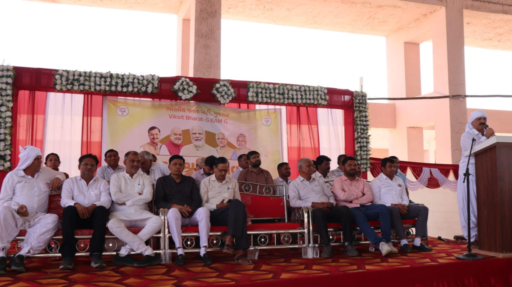 આજરોજ કચ્છ જીલ્લા ભાજપ દ્વારા “VB G RAM G” અભિયાન અંતર્ગત અંજાર એપીએમસી ખાતે ખેડૂત શ્રમિક સંમેલન યોજાયું