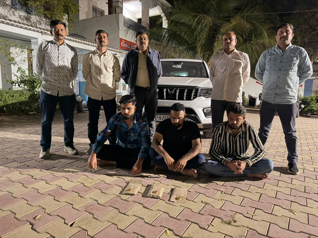 જે સુચના અને માર્ગદર્શન મુજબ લોકલ ક્રાઇમ બ્રાન્ય પશ્ચિમ કચ્છ-ભુજના પોલીસ ઇન્સ્પેકટરશ્રી એ.એમ.મકવાણા સાહેબ તથા પોલીસ સબ ઇન્સ્પેકટરશ્રી જે.બી.જાદવ સાહેબ તથા એમ.એચ.શીણોલ સાહેબનાઓએ ગેરકાયદેસર પ્રવૃતી કરતા ઇસમોને પકડી તેમના વિરૂધ્ધ કાયદેસરની કાર્યવાહી કરવા માટે સુચના અને માર્ગદર્શન આપેલ હોય જે સુચના મુજબ એ.એસ.આઇ. નિલેશભાઇ ભટ્ટ, અનિરૂધ્ધસિંહ રાઠોડ તથા પો.હેડ કોન્સ. ધર્મેન્દ્રકુમાર રાવલ, નવીનકુમાર જોષી, શક્તિસિંહ ગઢવી તથા પો.કોન્સ. ભરત ગઢવી તથા જીવરાજ ગઢવીનાઓ ભુજ શહેર વિસ્તારમાં પેટ્રોલીંગમાં હતા તે દરમ્યાન આશ્રમ ચોકડી પાસે પહોંચતા ભરત ગઢવી તથા જીવરાજ ગઢવીનાઓને સંયુક્ત રીતે ખાનગી રાહે બાતમી હકીકત મળેલ કે, “આસીફ અબ્દુલ બજાણીયા રહે ગંધીનગરી ભુજ વાળો પોતાના કબ્જાની મહીન્દ્રા કંપનીની સ્કોરપીઓ એન ગાડી જેના રજી નંબર જીજે ૧૨ એફ.ઇ. ૫૬૮૪ વાળીમાં તેના મળતીયાઓ સાથે હાલે નાગોર પુલીયા નજીક હાજર છે અને તે તેના મળતીયા સાથે મળી સોશ્યલ મીડીયા પ્લેટફોર્મ્સ (ફેસબુક અથવા ઇન્સ્ટાગ્રામ તેમજ વોટસએપ) એપ્લીકેશનમાં ખોટા નામે ફેક આઈ.ડી.ઓ બનાવી તે આઈ.ડી.ઓમાં તથા ગૃપો બનાવી સસ્તામાં સોનાના બિસ્કીટ આપવા સબંધેના વિડીયાઓ લોકોને લલચાવવા માટે લોભામણા વીડીયો બનાવી તે વીડીયાઓ મારફતે તેઓ વિવિધ લોકો સાથે સંપર્ક સાધી લાભ મેળવવાના બહાને વિશ્વાસમાં લઇ છેતરપીંડી કરે છે, તેના વિશ્વાસમાં આવેલ લોકો પાસેથી નાણાં પડાવી આર્થિક લાભ મેળવે છે તેમજ મેળવવાનો પ્રયાસ કરી રહેલ છે અને તેના કબ્જામાં તે મતલબેનો મુદ્દામાલ પડેલ છે.” જે આધારે વર્કઆઉટ કરી તપાસ કરતા ત્રણ ઇસમો (૧) આસીફ અબ્દુલ બજાણીયા ઉ.વ. ૩૩ રહે ગાંધીનગરી એર્પોર્ટ રોડ ભુજ તથા (૨) અફીદ અબ્દુલ રઝાક ચાકી ઉ.વ. ૨૫ રહે ખાટકી ફળીયુ ભુજ તથા (૩) અલીમામદ ઉર્ફે સાહીલ હનીફ કુરેશી ઉ.વ. ૨૨ રહે. જલારામ મંદીર પાછળ રવાણી ફળીયુ ભુજવાળા નાઓ મળી આવેલ અને તેઓની પાસેથી મળી આવેલ