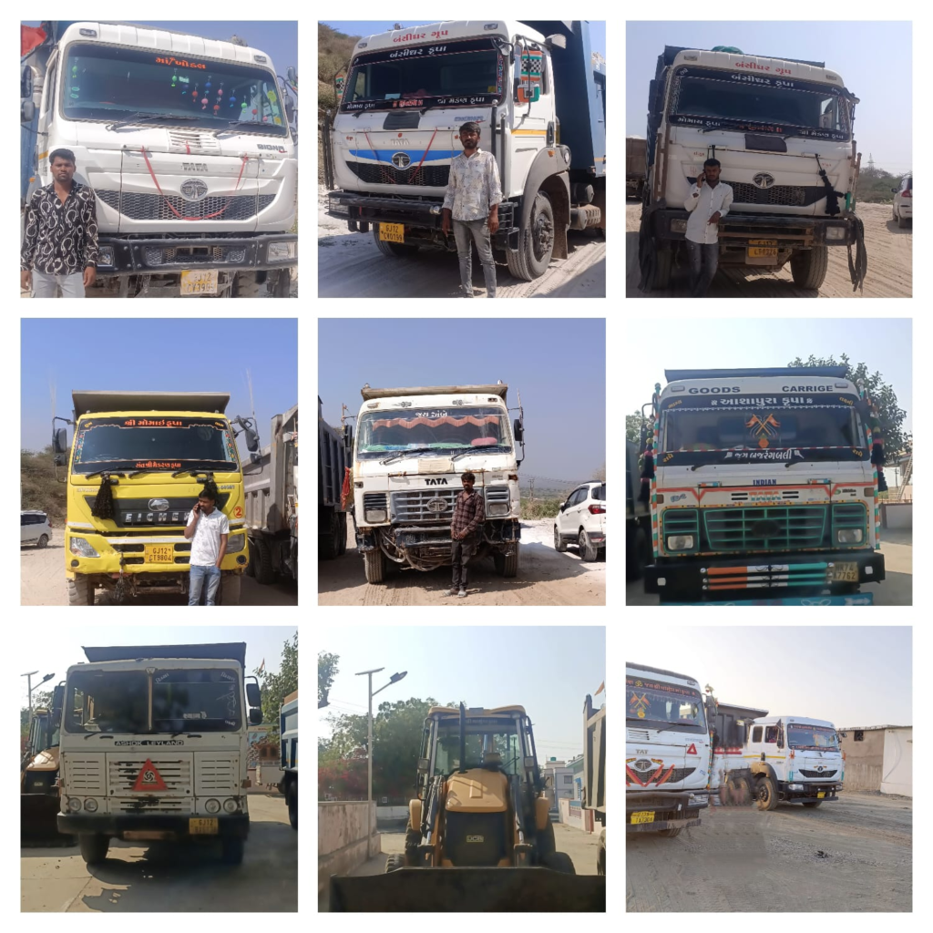 8 રોયલ્ટી પાસ પરમીટ વગર અને 2 ઓવરલોડ ખનીજ પરીવહન કરતી ટ્રકો સામે કાર્યવાહી