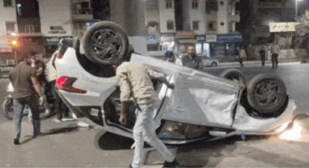 બે કાર વચ્ચે જોરદાર ટક્કર થયા બાદ કાર પલટી મારી ગઈ હતી…