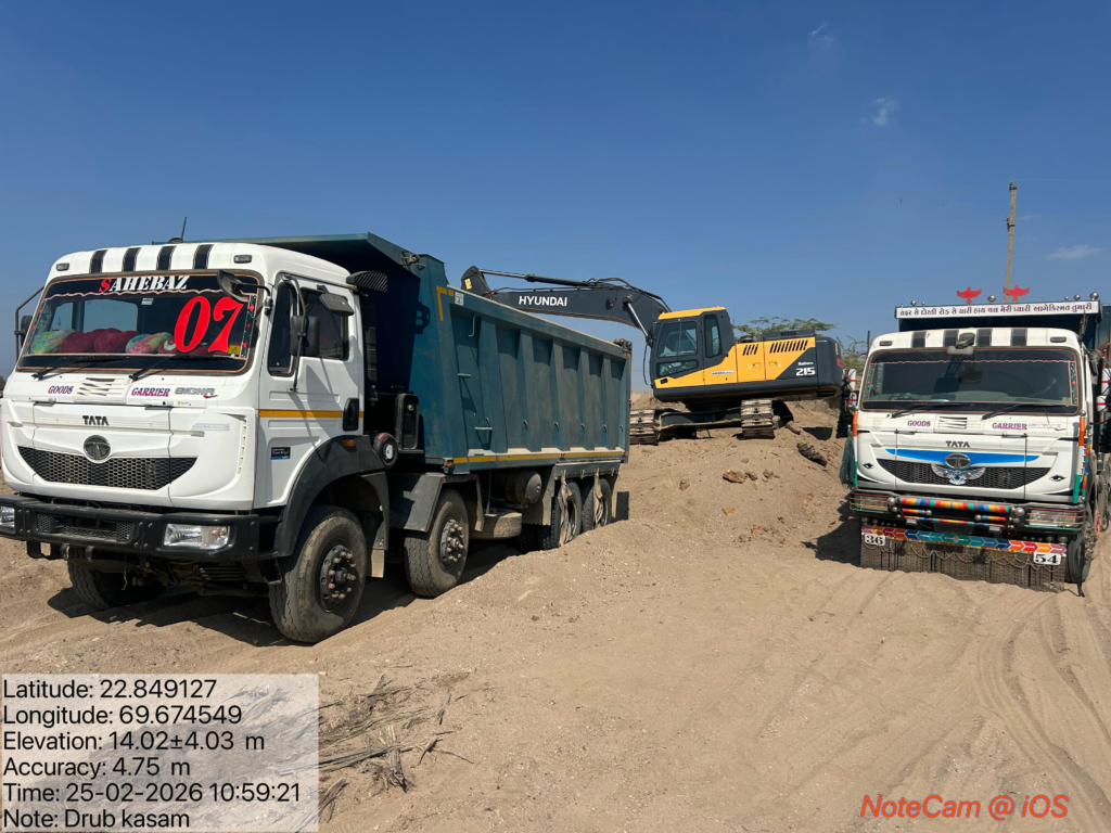 તેમજ ગઈ કાલે તા. ૨૩/૦૨/૨૦૨૬ના રોજ મોજે. મોટા કપાયા નદી વિસ્તાર ખાતેથી સાદીરેતી ખનિજનું ગેરકાયદે ખનન કરતાં એક ડમ્પર અને એક લોડર મશીન પકડવામાં આવેલ. સદર ડમ્પર અને લોડર મશીનને સિઝ કરી મુંદ્રા પોલિસ સ્ટેશન ખાતે કસ્ટડીમાં સોંપવામાં આવેલ છે. જેની આગળની કાયદેસરની કાર્યવાહી હવે પછી હાથ ધરવામાં આવશે.