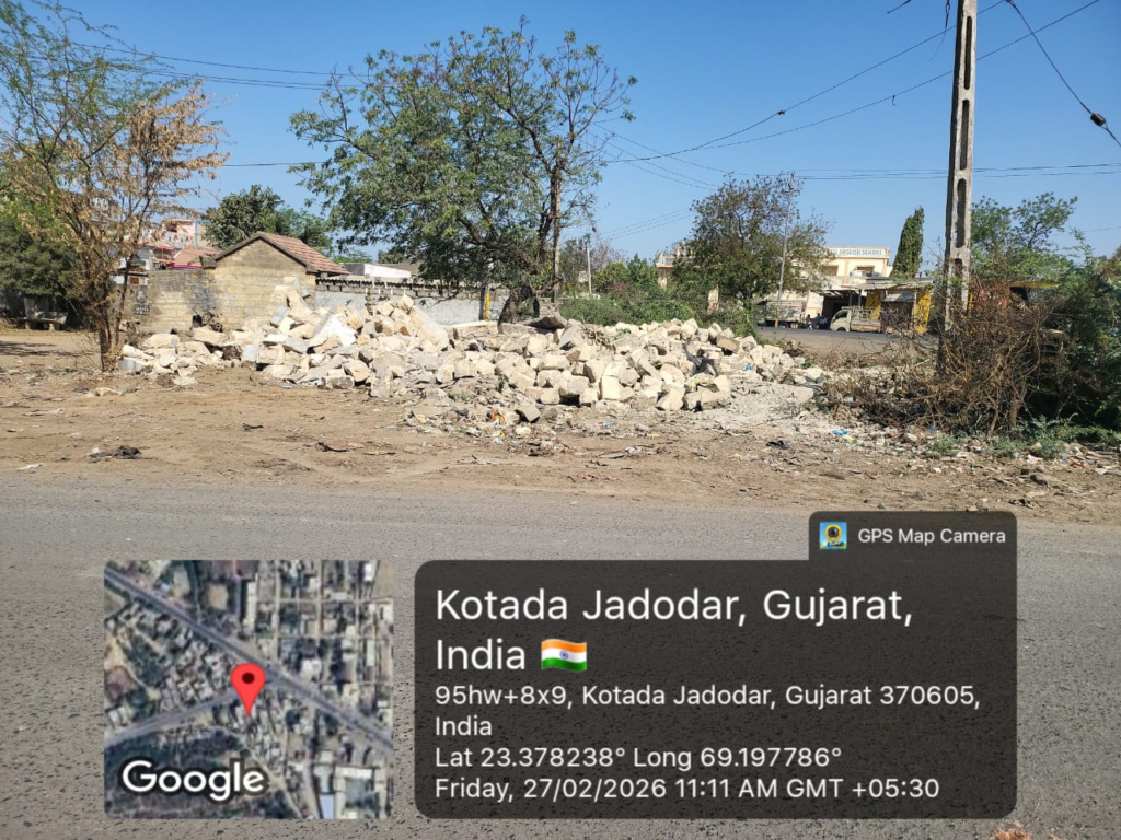 તા.૨૭ મી ફેબ્રુઆરી ૨૦૨૬ ના નખત્રાણા તાલુકાના મોજે.કોટડા જડોદર ના સરકારી પડતર જમીન સ.નં.૬૪૧ પૈકી વાળી જમીનમાં થયેલ ગેરકાયદેસર બિનઅધિકૃત કોર્મશીયલ દુકાનો બનાવેલ (૧) સમેજા જનરલ સ્ટોર, કોટડા જડોદર (૨) તાજ જનરલ સ્ટોર, કોટડા જડોદર (૩) સ્ટાર ગેસ વેલ્ડીંગ, કોટડા જડોદર તથા (૪) પરબતભાઈ જેપાર રહે.કોટડા જડોદર જેઓએ અંદાજીત કુલ ક્ષેત્રફળ ૧૫૦૦.૦૦ ચો.મી. જેટલી જમીન પર થયેલ બિનઅધિકૃત દબાણ કરવામાં આવેલ જે અન્વયે શ્રી આર.ડી.પટેલ મામલતદાર-નખત્રાણા તથા શ્રી ચેતન બોરડ, નાયબ કાર્યપાલક ઈજનેરશ્રી મા.અને મ. પેટા વિભાગ (રાજય) નખત્રાણા દ્વારા જ.મ.કા.ક.૨૦૨ તળે દબાણકારોને નોટીસ આપવામાં આવેલ અને આજ રોજ દબાણ દુર કરવામા આવેલ.