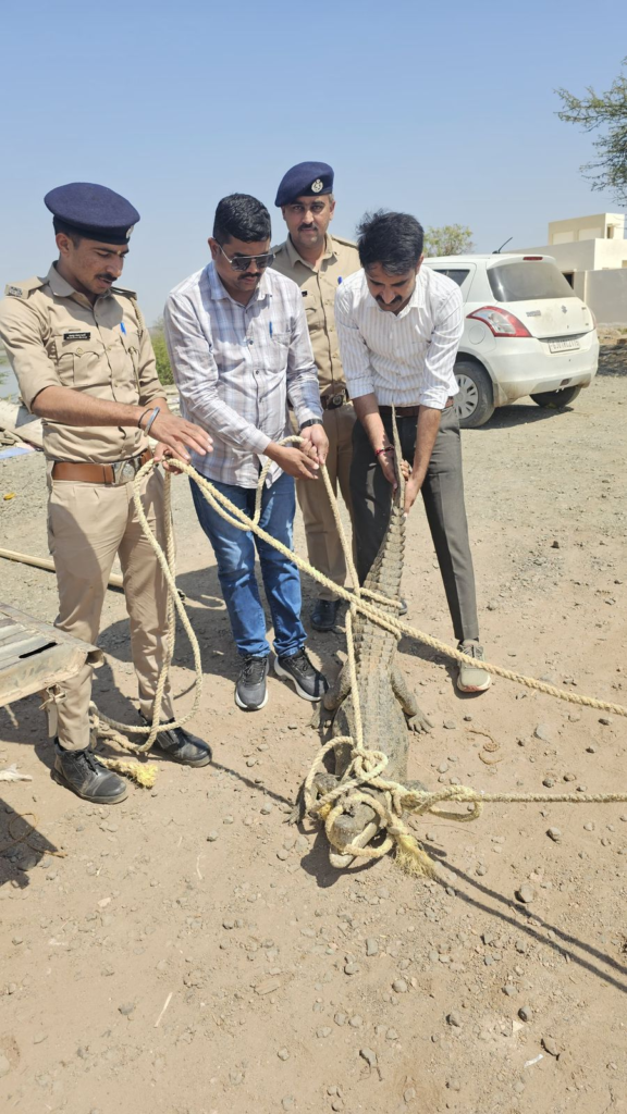 જે અન્વયે બી.પી.ખરાડી, પોલીસ ઇન્સ્પેક્ટર, કોડાય પોલીસ સ્ટેશનનાઓની સુચના મુજબ આજરોજ તા.૦૧/૦૩/૨૦૨૬ના રોજ બપોરના બારેક વાગ્યાના અરસામાં મદનપુરા ગામના વાડી વિસ્તારમાં જળચર પ્રાણી મગર આવી ચડતા તે બાબતની જાણ વાડીમાં કામ કરતા માણસો દ્રારા કોડાય પોલીસને થતા કોડાય પોલીસની ટીમ તાત્કાલીક સ્થાનિકે પહોંચી જઇ જોતા મગરની જગ્યા થી માણસોની વસાહટ તથા જાહેર રોડ ખુબ નજીકમાં હોઇ અને મગર માનવ વસાહટમાં જઇ શકે તેવી પુરી સંભાવના હોઇ, તાત્કાલીક ધોરણે કોડાય પોલીસના કર્મચારીઓએ ગ્રામ લોકોની મદદ મેળવી જરૂરી સાધન સામગ્રીનો ઉપયોગ કરીને મગરને વાડી વિસ્તારમાંથી રેસ્ક્યુ કરવામાં આવેલ અને બાદમાં ફોર વ્હીલ વાહનના ઉપયોગથી રેસ્કયુ કરાયેલા મગરને વાડી વિસ્તારથી કિ.મી. ૨૦ દુર આવેલ વિજય સાગર ડેમમાં સહી સલામત છોડવામાં આવેલ. ઉપરોકત કામગીરીમાં કોડાય પોલીસ સ્ટેશનનાં એ.એસ.આઇ. પ્રવિણભાઇ શીવાભાઇ પરમાર તથા પો.હેડ કોન્સ. વિપુલભાઇ દલજીભાઇ ચૌધરી તથા પો.હેડ કોન્સ. હરીભાઇ મુળુભા ગઢવી તથા પો.કોન્સ. કાનજીભાઇ ગઢવી હાજર રહેલ હતા.