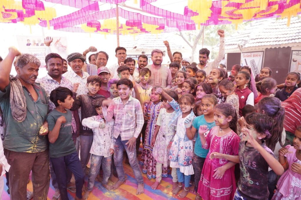 શૈક્ષણિક કીટ વિતરણ કરી રંગ ઉડાવી આનંદ ની પળો ના પ્રત્યક્ષ સાક્ષી બન્યા હતા. રંગોત્સ્વમાં યુવાનો, મહિલાઓ, બાળકો સૌએ