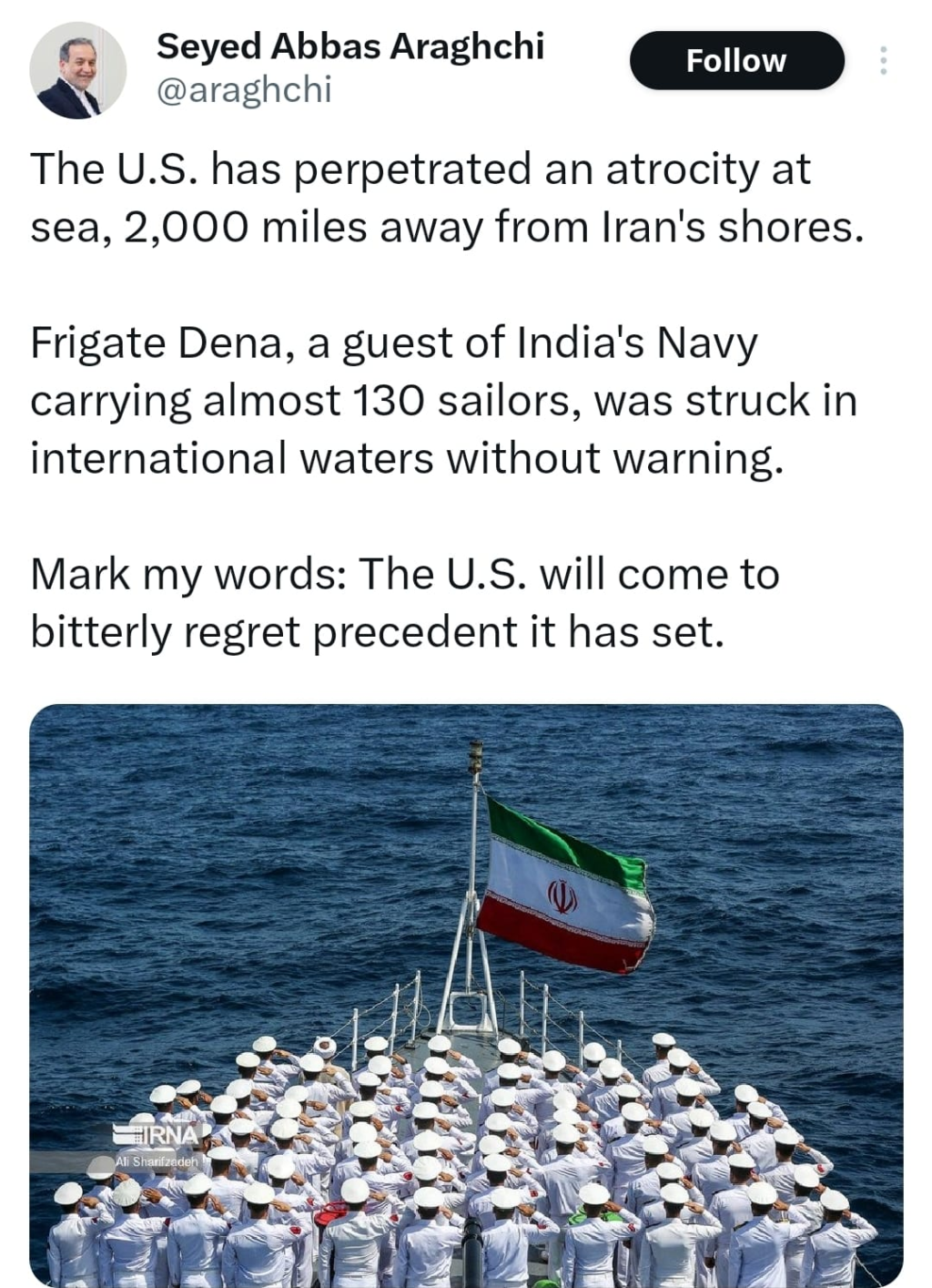 અમેરિકાએ તોડી પાડેલું ઈરાની યુદ્ધ જહાજ ભારતનું મહેમાન હતું.
