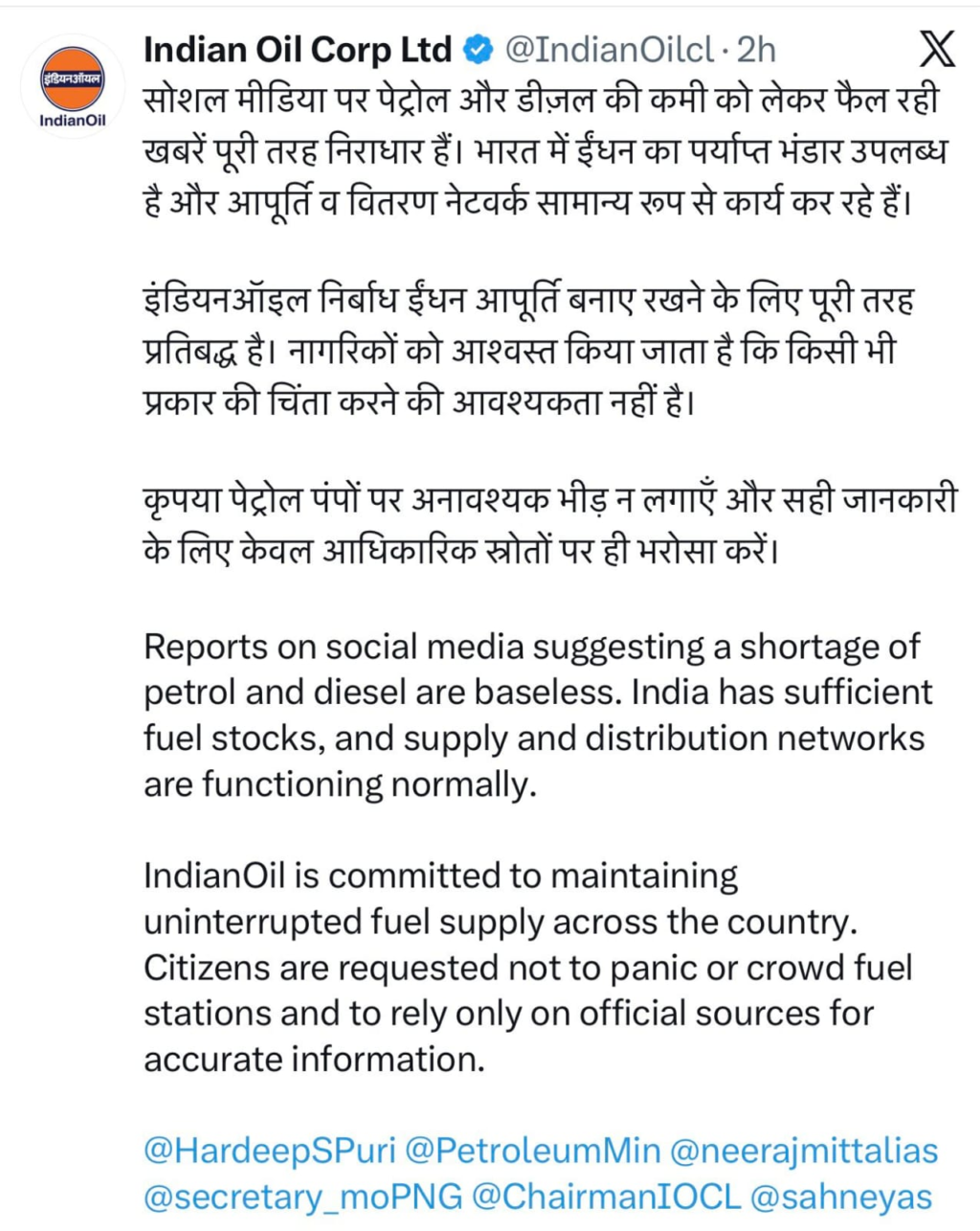 પેટ્રોલ ડીઝલ ખૂટી નથી પડ્યું… ખોટી અફવાઓમાંના દોરાશો..