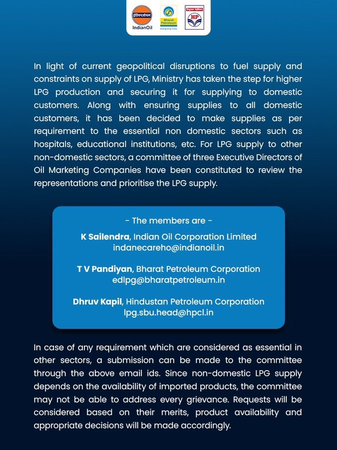 જો કોઈ સંસ્થાને ગેસની બહુ જરૂર હોય, તો તેમણે IOCL, BPCL કે HPCL ના અધિકારીઓને ઈમેલ કરીને જાણ કરવાની રહેશે.