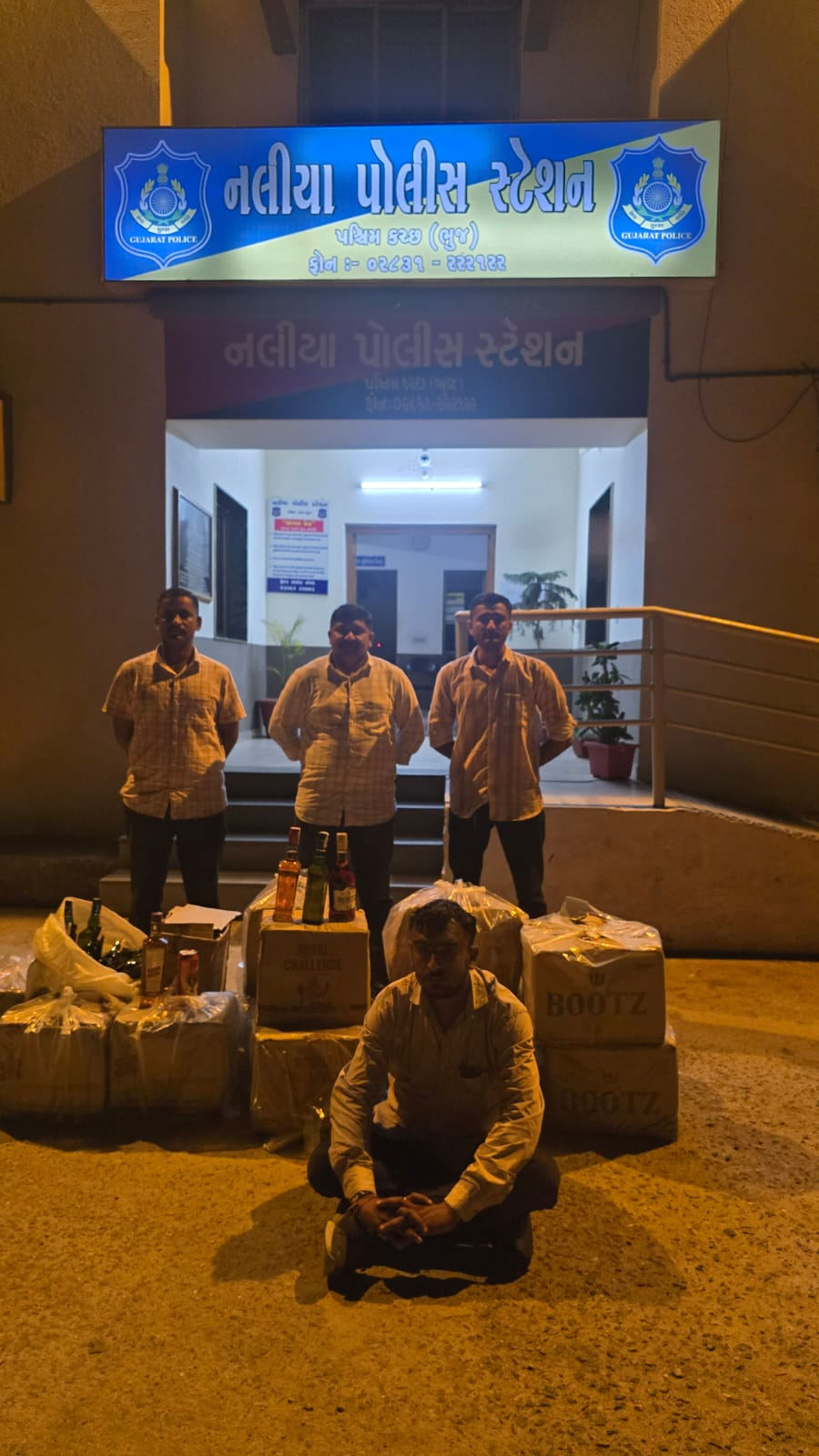 જે સુચના અન્વયે લોકલ ક્રાઇમ બ્રાન્ચ, પશ્ચિમ કચ્છ-ભુજના પોલીસ સબ ઇન્સ્પેકટરશ્રી એમ.એચ.શીણોલ સાહેબ નાઓએ પશ્ચિમ કચ્છ-ભુજ જિલ્લામાં ભારતીય બનાવટના વિદેશી દારૂની પ્રવૃત્તિનો ગેરકાયદેસર રીતે જથ્થો મંગાવી વેચનારા ઇસમો ઉપર વોચ રાખી કાયદેસર કાર્યવાહી કરવા સુચના આપેલ હોય જે સુચના અનુસંધાને એ.એસ.આઈ. વિકેશભાઇ રાઠવા તથા પોલીસ હેડ કોન્સ્ટેબલ શક્તિસિંહ ગઢવી, લાખાભાઇ રબારી તથા પોલીસ કોન્સ્ટેબલ અનિલભાઇ ખટાણા તથા વિરમભાઇ ગઢવીનાઓ નલીયા પોલીસ સ્ટેશન વિસ્તારમાં પેટ્રોલીંગમાં હતાં તે દરમ્યાન ફરતા-ફરતા નલિયા ગામના બસ સ્ટેશન પાસે પહોચતા વિકેશભાઇ રાઠવા તથા અનિલભાઇ ખટણાનાઓને સંયુક્ત અને ખાનગી રાહે બાતમી હકીકત મળેલ કે, “પુર્વજીતસિંહ દિલાવરસિહ ઉર્ફે ભાણુભા ઝાલા રહે.દરબાર ગઢ નલિયા તા.અબડાસા વાળાએ પોતાના રહેણાક મકાનની પાસે આવેલ પોતાના વરંડામા ગે.કા. રીતે ભારતીય બનાવટનો વિદશી દારૂનો જથ્થો બહારથી મંગાવી વેચાણ અર્થે રાખેલ છે.” જે હકીકત આધારે તપાસ કરતા નીચેની વિગતે ભારતીય બનાવટનો વિદેશીદારૂનો જથ્થો મળી આવેલ જેથી કાયદેસરની કાર્યવાહી કરી નલીયા પોલીસ સ્ટેશનમાં ગુ.ર.નં. ૦૦૫૮/૨૦૨૬ ધી ગુજરાત પ્રોહીબીશન એક્ટની કલમ ૬૫(એ) (ઇ),૮૧,૯૮(૨) મુજબ ગુનો રજીસ્ટર કરાવી તમામ મુદ્દામાલ નલીયા પોલીસ સ્ટેશન ખાતે સોપવામાં આવેલ.