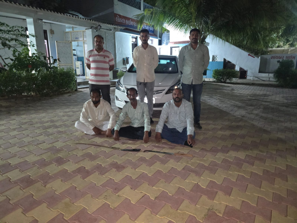 જે સુચના અનુસંધાને લોકલ ક્રાઇમ બ્રાન્ય પશ્ચિમ કચ્છ-ભુજના પોલીસ સબ ઇન્સ્પેકટરશ્રી એમ.એચ.શીણોલ સાહેબનાઓએ લોકલ ક્રાઇમ બ્રાન્ચના કર્મચારીઓની અલગ અલગ ટીમો બનાવી ભુજ શહેર તથા અન્ય વિસ્તારમાં શરીર સબંધી ગુનાઓ અટકાવવા તેમજ ગુનાહિત ઇતિહાસ ધરાવતા આરોપીઓને ચેક કરવાની કામગીરી સોપવામાં આવેલ. જે કામગીરી અન્વયે પોલીસ હેડ કોન્સ્ટેબલ રણજીતસિંહ જાડેજા, જયદેવસિંહ જાડેજા, સુનીલભાઇ પરમાર તથા પો.કોન્સ. પરબતભાઇ ચૌધરીનાઓ ભુજ શહેર વિસ્તારમાં આધુનીક ઇન્વેસ્ટીગેશન કિટ સાથે પ્રેટ્રોલીંગમાં હતા તે દરમ્યાન બાતમી હકીકત મળેલ કે, *અમુક ઇસમો પોતાની અંગત અદાવતને કારણે અને જુના ઝઢડાઓના કારણે મારામારી કરવાના ઇરાદાથી હથીયારો સાથે સફેદ કલરની વર્ના ગાડી લઇ નીકળેલ હોય.” જે બાબતે તુરંત જ વર્કઆઉટ કરી ડોલર હોટેલ ચાર રસ્તા ફાટક પાસે નાસીર મુર્ગી ફાર્મ પાસે આવતા એક સફેદ કલરની ફોર વ્હીલર હ્યુન્ડાઈ વર્ના ગાડી ઉભેલ હોય અને જે શંકાસ્પદ લાગતા ચેક કરતા તેમા ત્રણ ઇસમ બેઠેલ હોય તેઓને ગાડી નીચે ઉતારી સાથે રાખી તેઓના કબ્જાની ફોર વ્હીલર ગાડી ચેક કરતા ગાડીમાં પાછળના ભાગે એક તલવાર તથા એક ધારીયો તથા એક છરી સાથે (૧) મોહમ્મદઅસલમ અબ્દુલગફુર સમા ઉ.વ.૪૦ રહે. બકાલી કોલોની કોડકી રોડ ભુજ (૨) મોઇન ઇબ્રાહીમ સુમરા ઉ.વ.૩૧ રહે, કેમ્પ એરીયા એકતા ગલી ભુજ તથા (૩) એજાજ ઇબ્રાહીમ જત ઉ.વ.૨૯ રહે. ગાંધીનગરી ઇમામ ચોક પાસે ભુજવાળાઓ મળી આવેલ હોય. જેઓ જીલ્લા મેજીસ્ટ્રેટ અને કલેકટરશ્રી કચ્છ ભુજનાઓના હથીયારબંધી જાહેરનામાનો ભંગ કરી જાહેરમાં કોઇ કોગ્નીઝીબલ ગુનો કરવાના ઇરાદે હથીયારો રાખી ફરતા હોય ઉપરોક્ત ઇસમો વિરુધ્ધ ભુજ શહેર એ-ડીવીઝન પોલીસ સ્ટેશનમાં ગુ.ર.નં.૩૨૩/૨૦૨૬ જી.પી. એક્ટ કલમ ૧૩૫ મુજબ ગુના રજીસ્ટર કરાવી કાયદેસરની કાર્યવાહી હાથ ધરેલ છે.