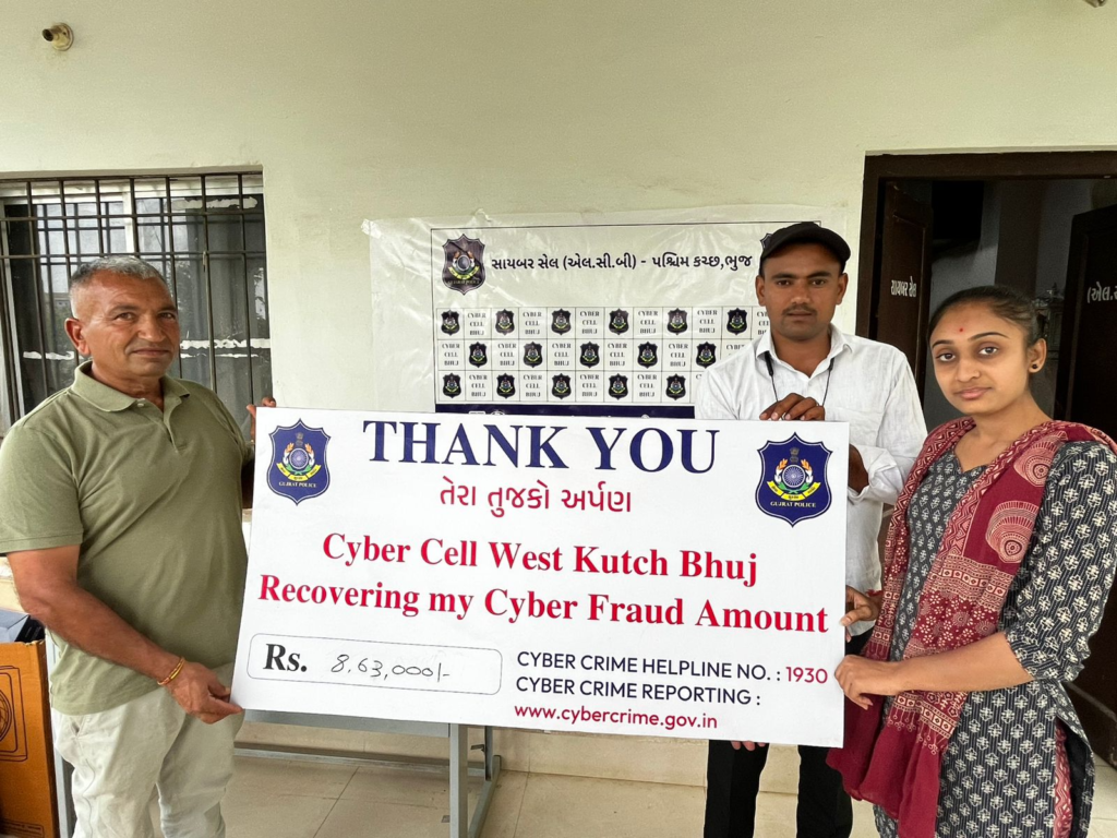 ઓનલાઇન નાણાકીય છેતરપિંડિનો ભોગ બનનાર અરજદારશ્રીઓ દ્વારા સાયબર સેલ(એલ.સી.બી.) ભુજ તથા સાયબર ક્રાઇમ હેલ્પલાઇન નંબર ૧૯૩૦ પર કોલ કરી કમ્પલેન કરેલ હતી જે કમ્પલેનમાં અરજદારશ્રીઓના ફોડમાં ગયેલ રૂપિયા અલગ અલગ બેંકમાં ફ્રીઝ કરવામાં આવેલ હતા. જે રૂપિયા અરજદારોના ખાતામાં પરત મેળવવા માટે સાયબર સેલ(એલ.સી.બી) તથા પોલીસ સ્ટેશન દ્વારા અરજદારશ્રીઓને કોર્ટમાં અરજી કરાવી ઝડપથી કાયદાકીય કાર્યવાહી કરી અરજદારશ્રીઓના ખાતામાંથી ગયેલ નાણા કુલ્લે રૂપીયા ૨૫,૧૭,૧૩૬/- અરજદારશ્રીઓના કોર્ટ ઓર્ડર મેળવી અરજદારશ્રીઓના બેન્ક ખાતામાં પરત અપાવી તેરા તુજકો અર્પણ સુત્રને સાર્થક કરેલ છે.