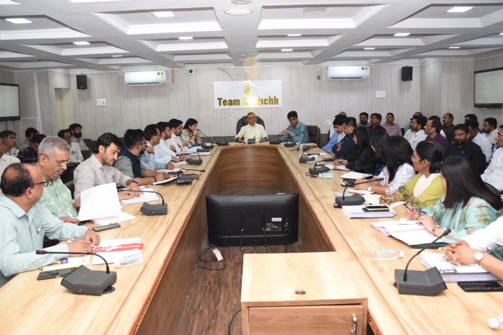 રાજ્યમાં સ્થાનિક સ્વરાજ્યની સંસ્થાઓની સામાન્ય ચૂંટણી-૨૦૨૬ની જાહેરાત થતાની સાથે જ સમગ્ર કચ્છ જિલ્લામાં આદર્શ આચારસંહિતાનો અમલ શરૂ થઈ ચૂક્યો છે. જિલ્લા પંચાયત, તાલુકા પંચાયતો અને નગરપાલિકાની ચૂંટણીઓને મુક્ત, ન્યાયી અને પારદર્શક રીતે સંપન્ન થાય તે માટે જિલ્લા વહીવટી તંત્ર સંપૂર્ણપણે સજ્જ છે. આ અનુસંધાને આજરોજ કચ્છ કલેક્ટર કચેરીના સભાખંડ ખાતે જિલ્લા ચૂંટણી અધિકારી શ્રી આનંદ પટેલની અધ્યક્ષતામાં ચૂંટણીલક્ષી વિવિધ કામગીરી સંભાળતા રિટર્નિંગ ઓફિસર, આસિસ્ટન્ટ રિટર્નિંગ ઓફિસર, નોડલ અધિકારીશ્રીઓની બેઠક યોજાઈ હતી.