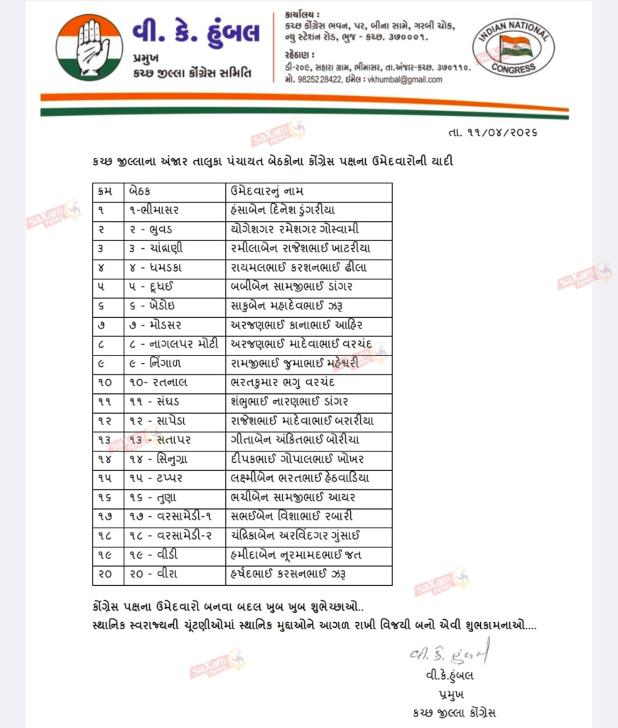 Breaking News Kutch અંજાર તાલુકા પંચાયત બેઠકોના કોંગ્રેસ પક્ષના ઉમેદવારોની યાદી 2 hours ago Kutch Care News Continue Reading Previous કચ્છમાં નિરોણા જિલ્લા પંચાયત સીટને લઇ વિવાદNext પધ્ધર પોલીસ સ્ટેશન વિસ્તારમાં ક્રિકેટ સટ્ટો રમતા ઇસમને પકડી કાયદેસરની કાર્યવાહી કરતી લોકલ ક્રાઈમ બ્રાન્ચ, પશ્ચિમ કચ્છ-ભુજ” More Stories Breaking News Crime Kutch ક્રિકેટ સટ્ટાના હારજીતના સોદા લઇ રમાડતા ઇસમને પકડી કાયદેસરની કાર્યવાહી કરતી લોકલ ક્રાઈમ બ્રાન્ચ, પશ્ચિમ કચ્છ-ભુજ” 15 mins ago Kutch Care News Breaking News Crime Kutch ભારતીય બનાવટના વિદેશી દારૂનું ગેરકાયદેસર વેચાણ કરતાં ઇસમની અટકાયત કરતી લોકલ ક્રાઇમ બ્રાન્ચ પશ્ચિમ કચ્છ-ભુજ” 30 mins ago Kutch Care News Breaking News India દિગ્ગજ ગાયિકા 92 વર્ષીય આશા ભોસલેની તબીયત લથડી હતી 34 mins ago Kutch Care News