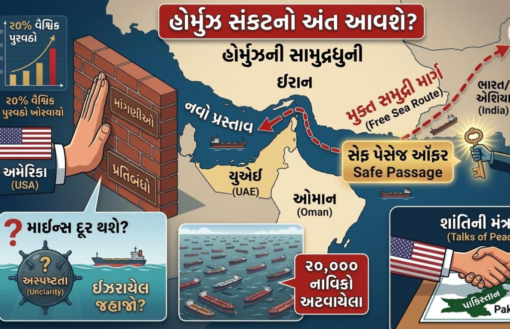 ઈરાન અને અમેરિકા વચ્ચેના તણાવમાં એક મહત્વપૂર્ણ વળાંક આવતા હોર્મુઝની સામુદ્રધુની (Strait of Hormuz) માં સર્જાયેલ સંકટ ઉકેલાવાની નવી આશા જાગી છે. તાજેતરના અહેવાલો મુજબ, ઈરાને વૈશ્વિક ઉર્જા પુરવઠાને પુનઃસ્થાપિત કરવા માટે અમેરિકા સમક્ષ એક નવો પ્રસ્તાવ રજૂ કર્યો છે.