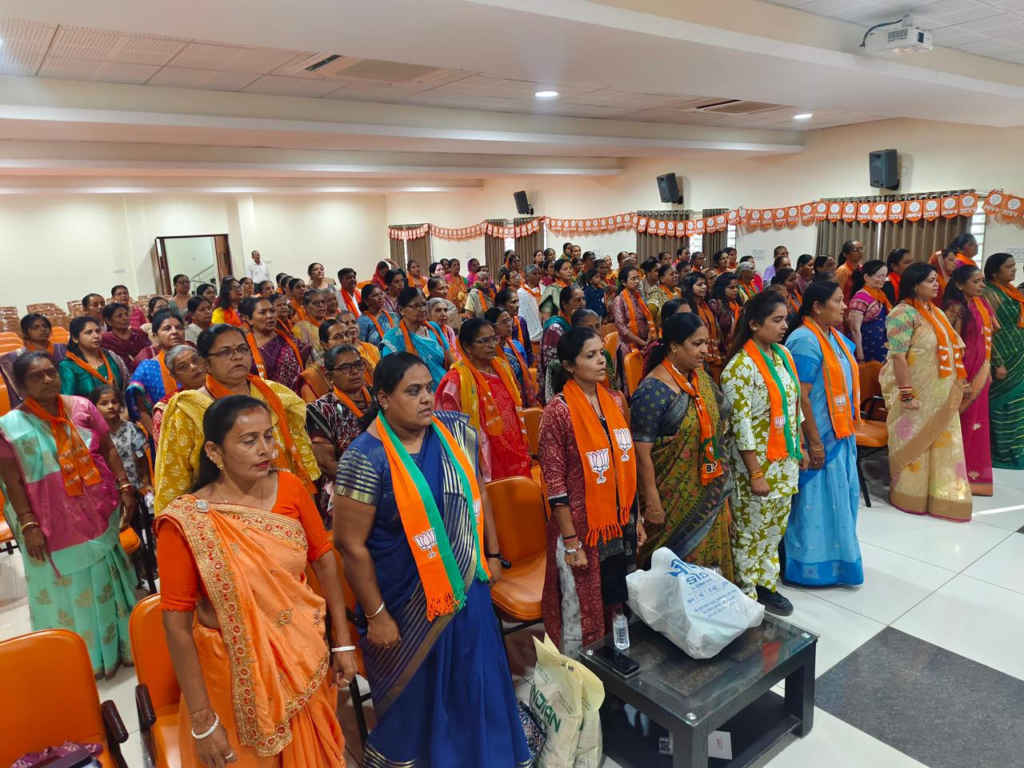 પ્રદેશ ભાજપ મહિલા મોરચા અધ્યક્ષા અંજુબેન વેકરીયાએ જણાવ્યું હતું કે સ્થાનિક સ્વરાજ્યમાં 50% અનામત બાદ હવે વિધાનસભા લોકસભામાં પણ 33% મહિલા અનામત ખૂબ ઝડપથી લાગુ પડવા જઈ રહ્યું છે. માતૃશક્તિની મહત્તા દર્શાવતા તેમણે ઉમેર્યું હતું કે આપણે સૌ એ પરંપરાના વાહકો છીએ કે જ્યાં ધરતી, રાષ્ટ્ર અને નદીઓને પણ માતા સાથે સરખાવી છે ત્યારે મહિલાઓની અપાર ક્ષમતાને સથવારે ભારતીય જનતા પાર્ટી આ ચૂંટણીમાં ઝળહળતું પરિણામ પ્રાપ્ત કરશે એ દીવા જેવી સ્પષ્ટ બાબત છે. અંતમાં તેમણે કહ્યું હતું કે જે ઘર પરિવાર સારી રીતે ચલાવી શકે છે એ નારીજાતિ દેશ, રાજ્ય અને પ્રાંત પણ ખૂબ જ ઉમદા રીતે ચલાવી શકવાનું સામર્થ્ય ધરાવે છે જેથી આપણે સૌ બહેનોએ આગામી દિવસોમાં સતત લોકોની વચ્ચે રહીને મહત્તમમાં મહત્તમ લોકોનો વ્યક્તિગત સંપર્ક કરીને આપણી વાત અને વિચારધારા તેમની સમક્ષ મૂકવી પડશે અને સ્ત્રી શક્તિની અખૂટ ઉર્જા અને તાકાતનો પરિચય સૌને આપવો પડશે