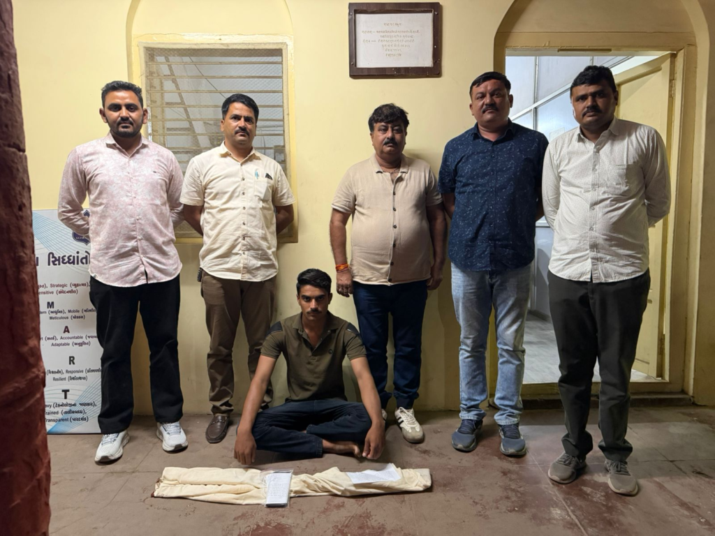 દરમ્યાન આજરોજ તા.૧૯/૦૪/૨૦૨૬ના રોજ એસ.ઓ.જી. ના કર્મચારીઓ પેટ્રોલીંગમાં હતા, દરમ્યાન એ.એસ.આઇ. નરેન્દ્રસિંહ જાડેજા તથા નરેન્દ્રસિંહ ઝાલાનાઓને સંયુક્ત રીતે મળેલ ખાનગી રાહે સચોટ બાતમી અન્વયે જરૂરી વર્કઆઉટ કરી ભુજ તાલુકાના નાના વરનોરા ગામની ઉતરાદી સીમમાંથી આરોપી સૈફુન જભાર મમણ, ઉવ.૨૪, રહે. ગામ. નાના વરનોરા, તા.ભુજવાળાને પાસ-પરમીટ કે માન્ય આધાર-પુરાવા વિના ગેરકાયદેસર રીતે રાખેલ એક દેશી બનાવટની બંદુક (અગ્નિશસ્ત્ર) કિ.રૂ.૨,૦૦૦/- સાથે ઝડપી પાડી ઉપરોક્ત મજકુર ઇસમ વિરૂધ્ધ માધાપર પોલીસ સ્ટેશન ખાતે આર્મ્સ એક્ટ તથા જાહેરનામા ભંગ હેઠળ કાયદેસરની કાર્યવાહી કરવામાં આવેલ છે.