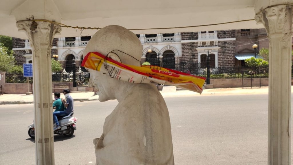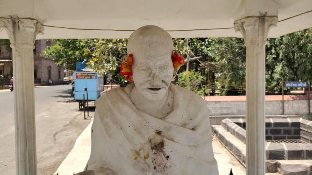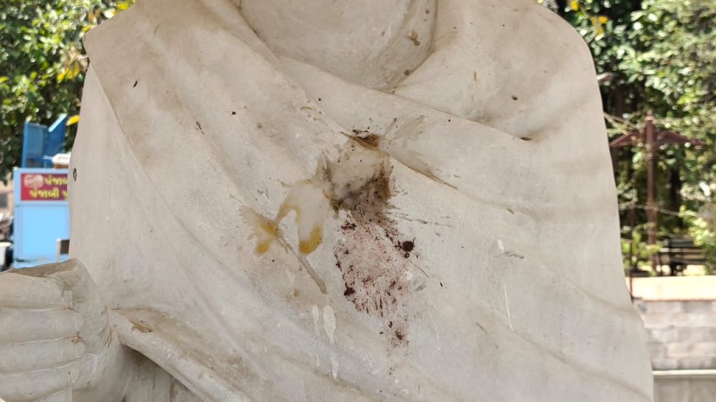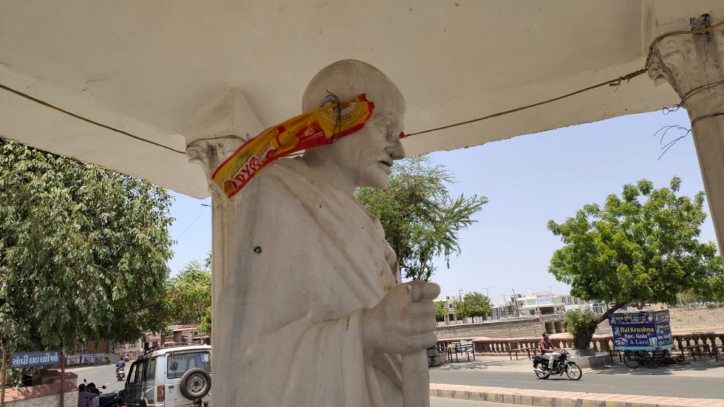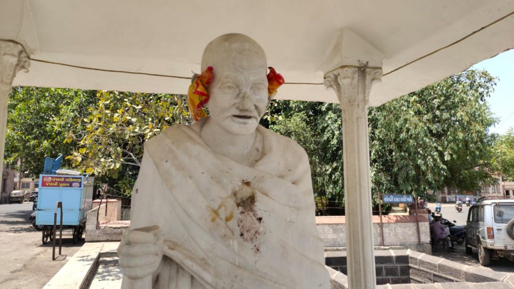 ભુજના હમીરસર તળાવ પાસે આવેલી રાષ્ટ્રપિતા મહાત્મા ગાંધીજીની પ્રતિમા નગરપાલિકા દ્વારા ઉપેક્ષિત રહી છે.પરંતુ આજનું આ દ્રશ્ય જોતો એવું લાગે છે.કે સમગ્ર શહેરથી ઉપેક્ષિત છે.ગાંધીજી ની પ્રતિમા ઉપર પાન માવાના થુકની પિચકારી મારવામાં આવેલી છે. તેમના માથામાં કાગળના કચરાનો હાર પહેરાવેલો છે.આ કૃત્ય જે પણ વિકૃત મગજના શખ્સ નું હોય તેને શોધી અને પોલોસ કાર્યવાહી કરે તે જરૂરી છે.