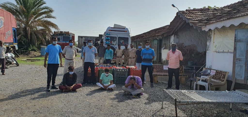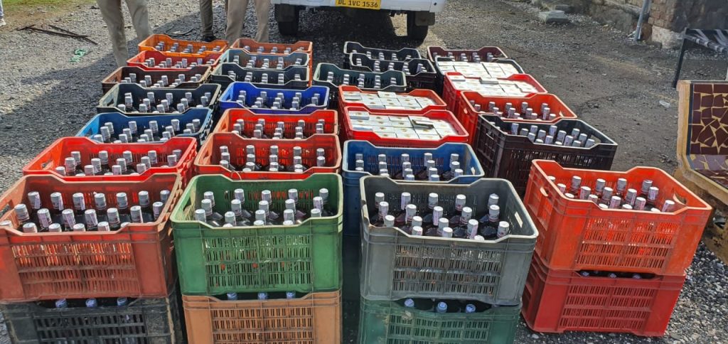 ભાવનગર રેન્જના જીલ્લાઓમાં દારૂ તથા જુગાર જેવી ગેરકાયદેસર પ્રવૃતિ સદ્તર બંધ કરવા સારૂ ભાવનગર રેન્જના નાયબ પોલીસ મહાનિરીક્ષકશ્રીએ ખાસ ઝુંબેશ ઉપાડેલ હોય જે અન્વયે તમામ પોલીસ અધિકારીઓને સુચના આપેલ હોય જેના ભાગ રૂપે આર.આર.સેલ, ભાવનગર રેન્જના પોલીસ સબ ઇન્સ્પેકટરશ્રી આર.એચ.બાર સાહેબ તથા રેન્જ પેરોલ ફર્લો સ્કોર્ડના પોલીસ સબ ઇન્સ્પેકટરશ્રી ટી.એસ.રીઝવી સાહેબની સુચના તથા માર્ગદર્શન મુજબ ગત રાત્રીના ભાવનગર આર.આર. સેલ, સ્ટાફના માણસોને મળેલ બાતમી આધારે વેળાવદર ભાલ પો.સ્ટે.ના પોલીસ સબ ઇન્સ.શ્રી આઇ.ડી.જાડેજા તથા સ્ટાફના માણસોએ અમદાવાદ-ભાવનગર હાઇવે રોડ, ભડભીડ ગામના પાટીયા પાસેથી ટુરીસ્ટ ટ્રાવેલર મીની બસ નંબર. DL-1-VC-1536 બસની છત તથા બસની બન્ને સાઇડના અંદરના પડખામા ચોર ખાનુ બનાવીને છુપાવેલ ભારતીય બનાવટની વિદેશી દારુની પેટી નંગ-૯૦, બોટલ નંગ-૧૦૮૦ કિ.રૂ. ૪,૦૫,૦૦૦/- તથા ટુરીસ્ટ ટ્રાવેલર બસ તથા મોબાઇલ ફોન-૨ સહિત કૂલ કી.રુ. ૧૦,૦૯,૦૦૦/- ના મુદામાલ સાથે આરોપીઓ (૧) રાજીવ જ્ઞાનસિંહ રાણા ઉ.વ ૩૮ રહે ખસરા નં ૨૧/૧/૨, ગલી નં. ૧૧/૩, કૌશીક ઇન્કલેવ, બુરાહી, દીલ્લી, (૨) સિધ્ધરાજસિહ બળદેવસિંહ ઝાલા ઉ.વ ૩૦ રહે લાંભા ગામ, મકાન નં. ૨૪૪૩, ઇંદીરાનગર વિભાગ ૦૨, તા, દસક્રોઇ જી અમદાવાદ (૩) જગદીશભાઇ ગોવિંદભાઇ પઢીયાર ઉ.વ ૨૨ રહે વણાજારા વાસ, અગ્રવાલ સ્કુલની પાસે નારોલ પોલીસ ચોકીની પાછળ, નારોલ ગામ, અમદાવાદ વાળાને પકડી પાડેલ ત્રણેય ઇસમો તથા સદરહુ દારૂનો જથ્થો આપનાર ઇસમ ભરતભાઇ રામારામભાઇ દેવાસી રબારી રહે અસલાલી ગામ, ગ્રામ પંચાયતની બાજુમા તા, દસક્રોઇ જી અમદાવાદ વાળા સહિતના તમામ ઇસમો વિરૂધ્ધ પ્રોહી. એકટ તળે વેળાવદર ભાલ પોલીસ સ્ટેશનમાં ગુન્હો રજીસ્ટર કરાવેલ છે.