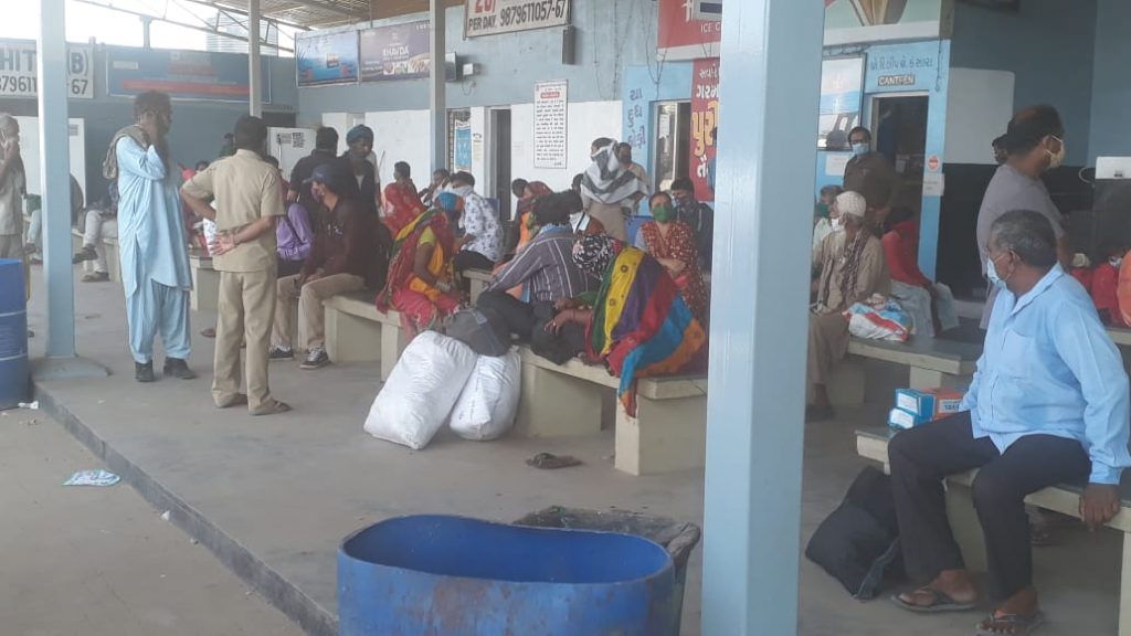 ભુજના હંગામી બસ સ્ટેશનમાં શોસિયલ ડિસ્ટન્સ ના ઊડ્યાં ધજાગરા