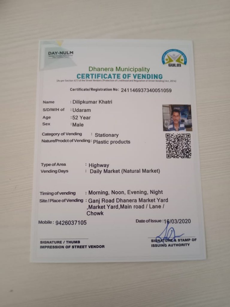 ધાનેરા શહેરમાં શહેરી ફેરીયાઓને પ્રમાણપત્ર આપવામાં આવ્યા
