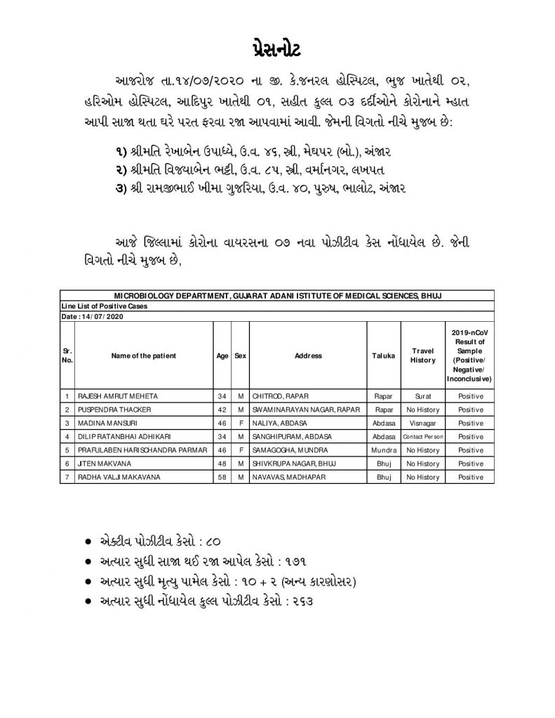 Breaking News Kutch કરછ માં કોરોના કહેર યથાવત આજે વધુ સાત નવા કોરોના પોઝીટીવ કેસ નોંધાયા 6 years ago Kutch Care News Continue Reading Previous માધાપર માં ૧૨૫ ફુટઊંડા કૂવા માં બિલાડો પડી જતાં ગૌરક્ષક ની ટિમ દ્વારા મહા મેહનતે જીવ બચાયોNext ફુલેશભાઈ માહેશ્વરી ના દિવંગત આત્મા ની શાંતિ મળે અવિરત આ સેવા એમની ચાલુ રહેશે More Stories Breaking News Crime Gujarat અમદાવાદમાંથી 9.48 લાખના MD ડ્રગ્સ સાથે એક યુવાનની થઈ ધરપકડ 16 hours ago Kutch Care News Breaking News Crime Gujarat અમદાવાદમાં શિવાલિક’ બિલ્ડિંગમાં વિકરાળ આગ ભભૂકી ઉઠતાં ભારે ધોડદામ મચી 16 hours ago Kutch Care News Breaking News Crime Kutch ખેડોઇ નજીકથી ગાંજાના જથ્થા સાથે એક શખ્સની થઈ ધરપકડ 17 hours ago Kutch Care News